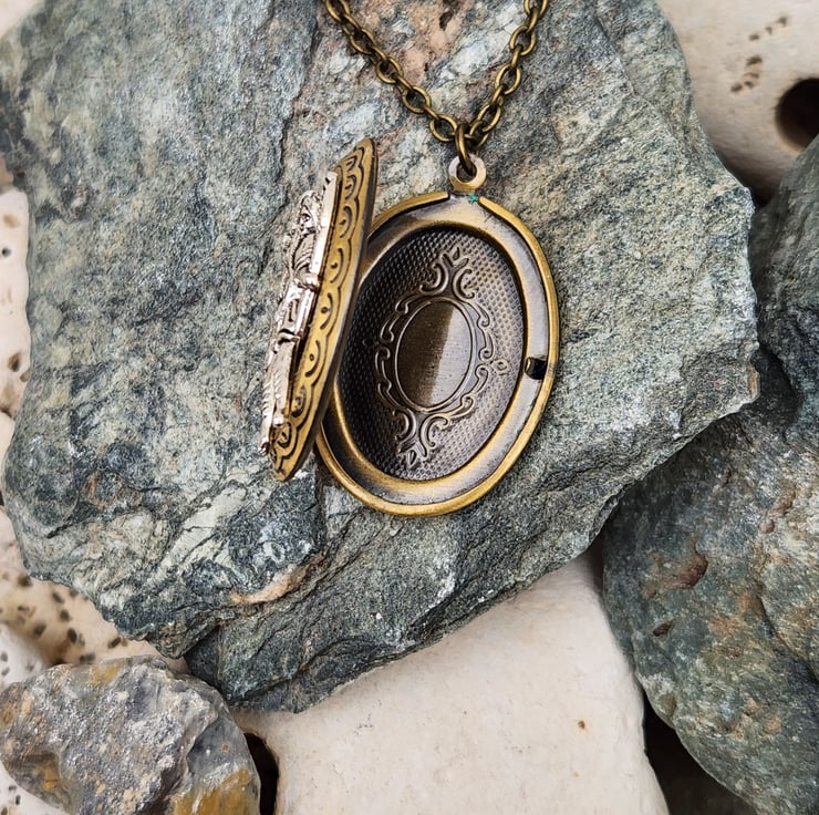 This pendant will arrive on a 21" bronze tone chain. Locket measures approximately 1.2 inches ( Just over 3cm).