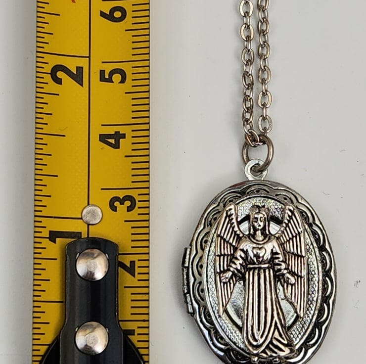 This pendant will arrive on a 21" stainless steel chain. Locket measures approximately 1.2 inches ( Just over 3cm).