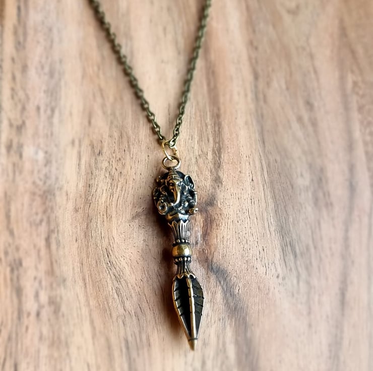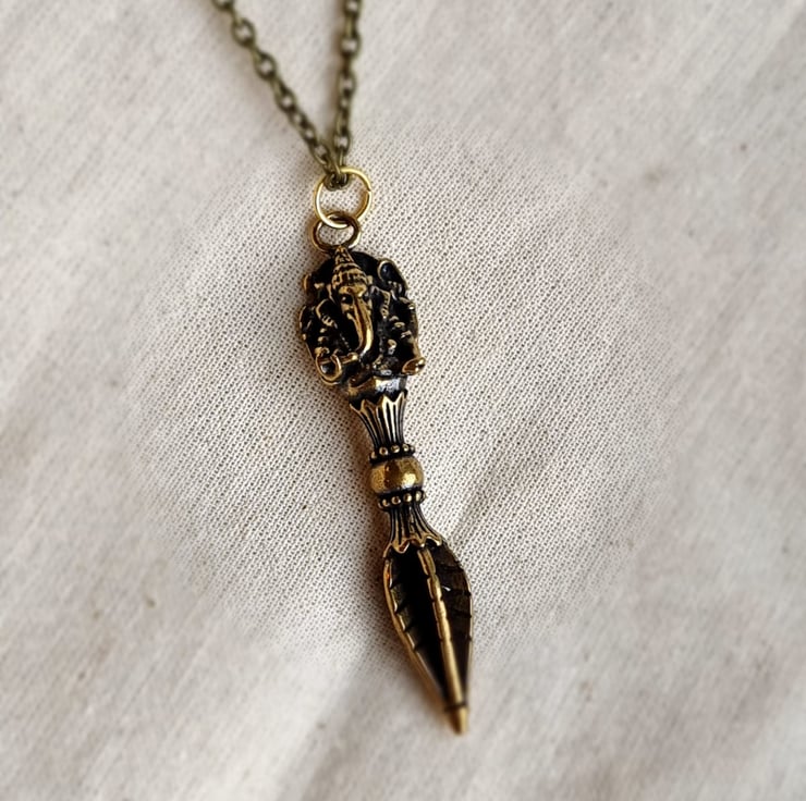 Tibetan Kila pendant on a bronze tone chain.