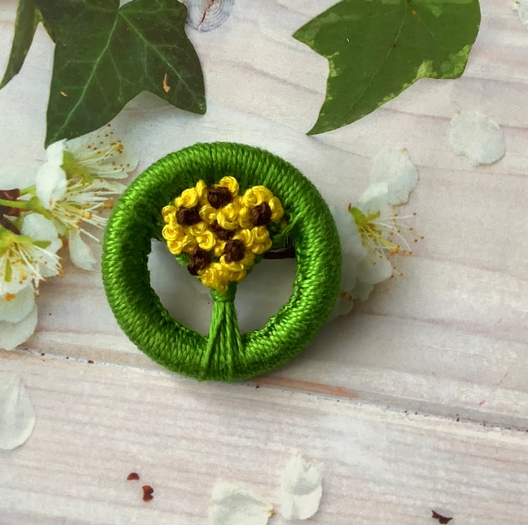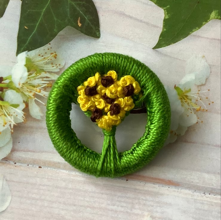 I have then embroidered french knots in yellow with brown centres for the sunflowers.