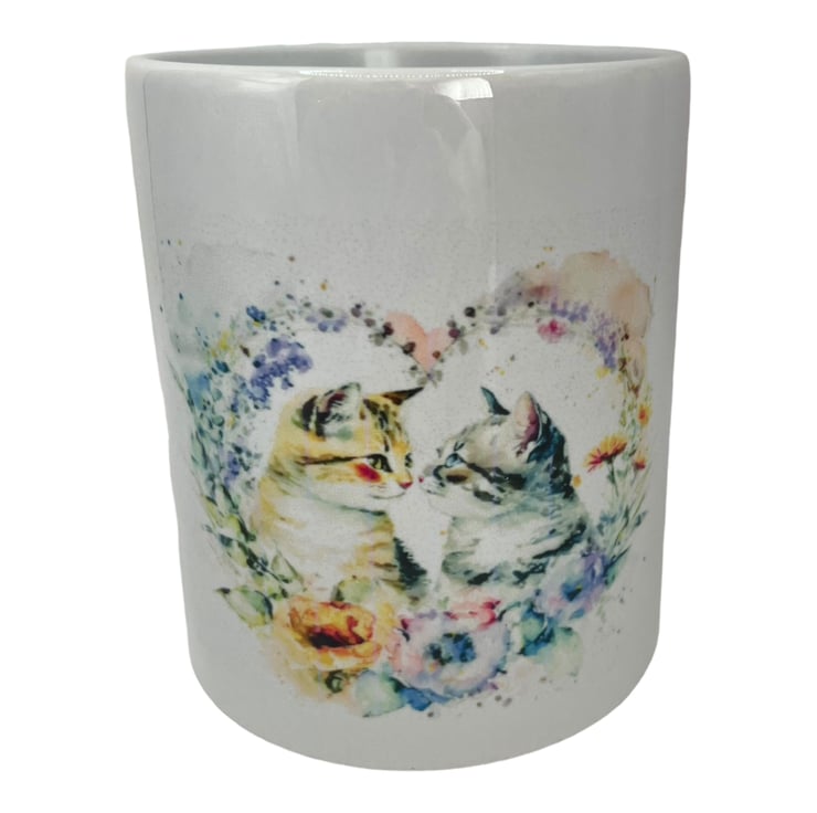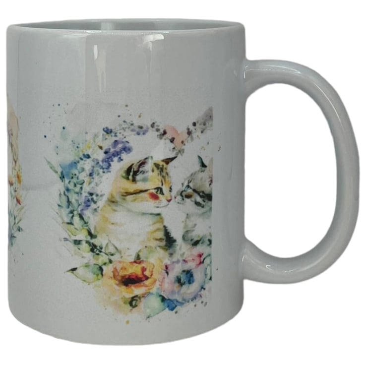 This exquisite mug with a captivating watercolour style image of cats is the perfect addition to any cat lover's collection. Crafted with utmost precision and attention to detail, this mug showcases the beauty and grace of feline companions in a truly artistic manner. The watercolour style adds a touch of elegance and sophistication, making it a delightful piece of art that you can enjoy every day.