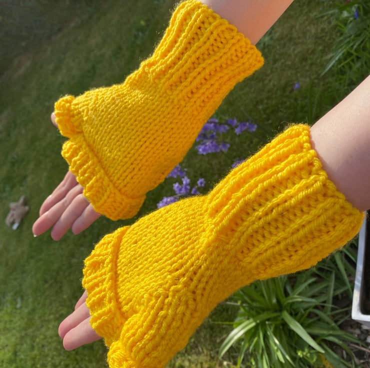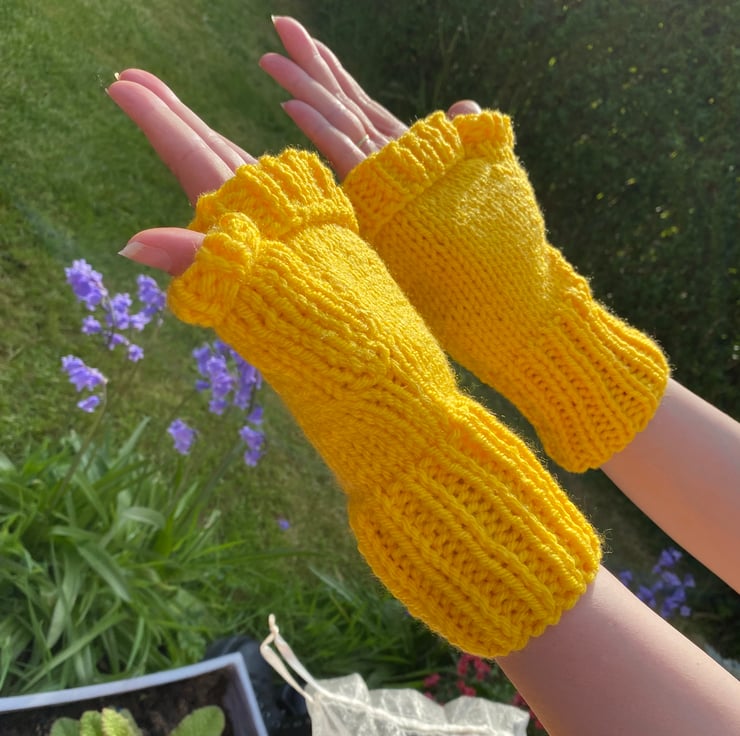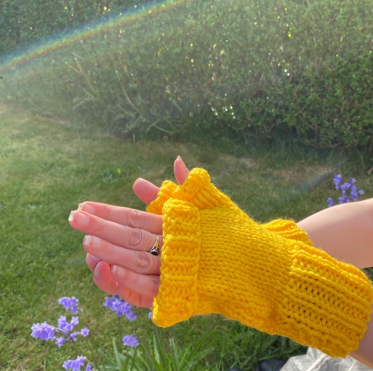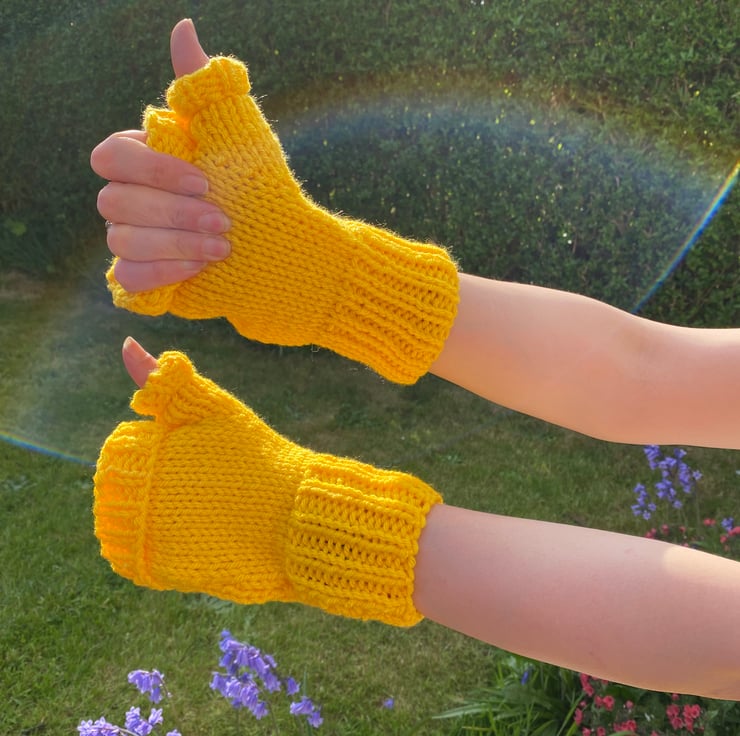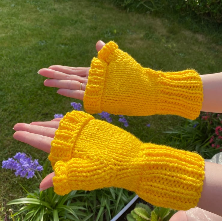 Bright yellow thick and cosy fingerless mittens to bring a splash of sunshine and colour to even the coldest days.