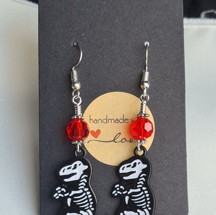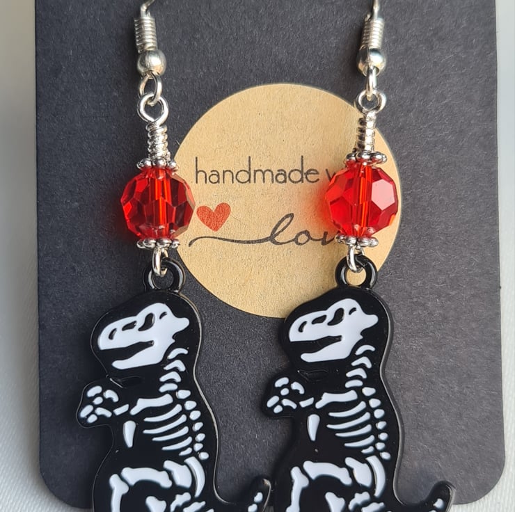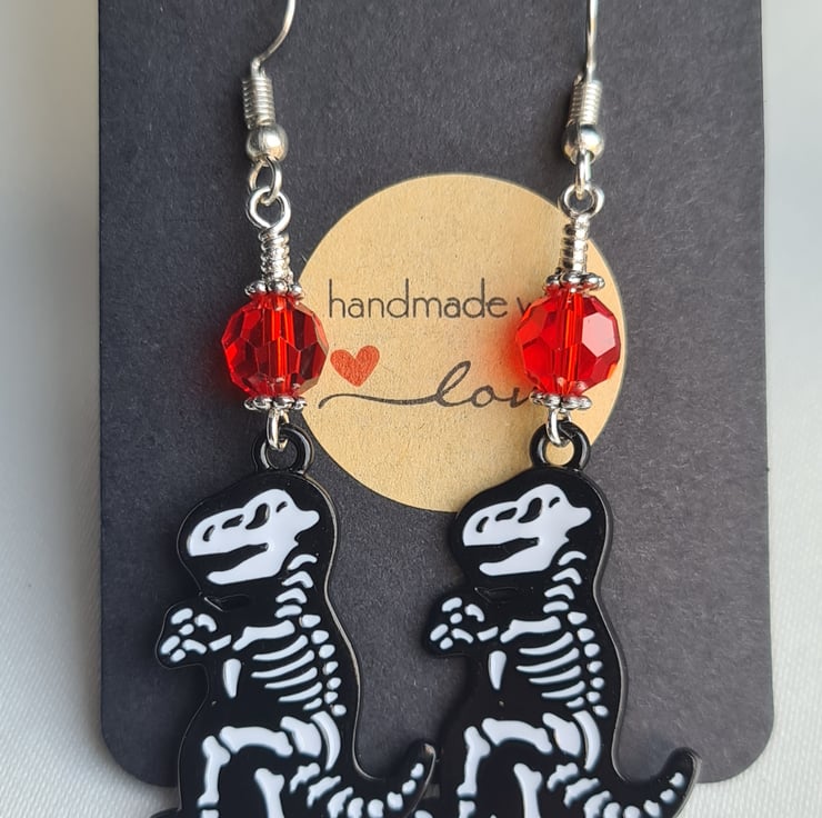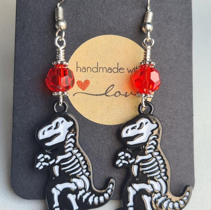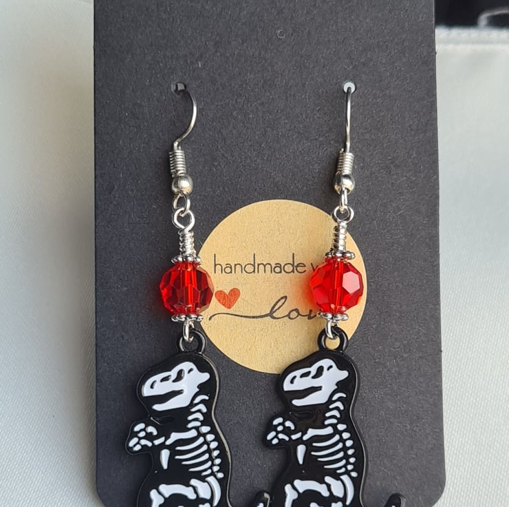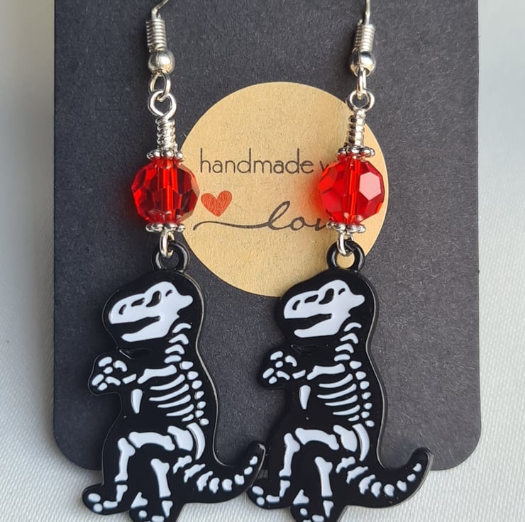 A fun and quirky pair of dangly T-Rex skelly earrings. Great for Dinosaur fans, Archaeologist (lol) or those who love unusual jewellery.