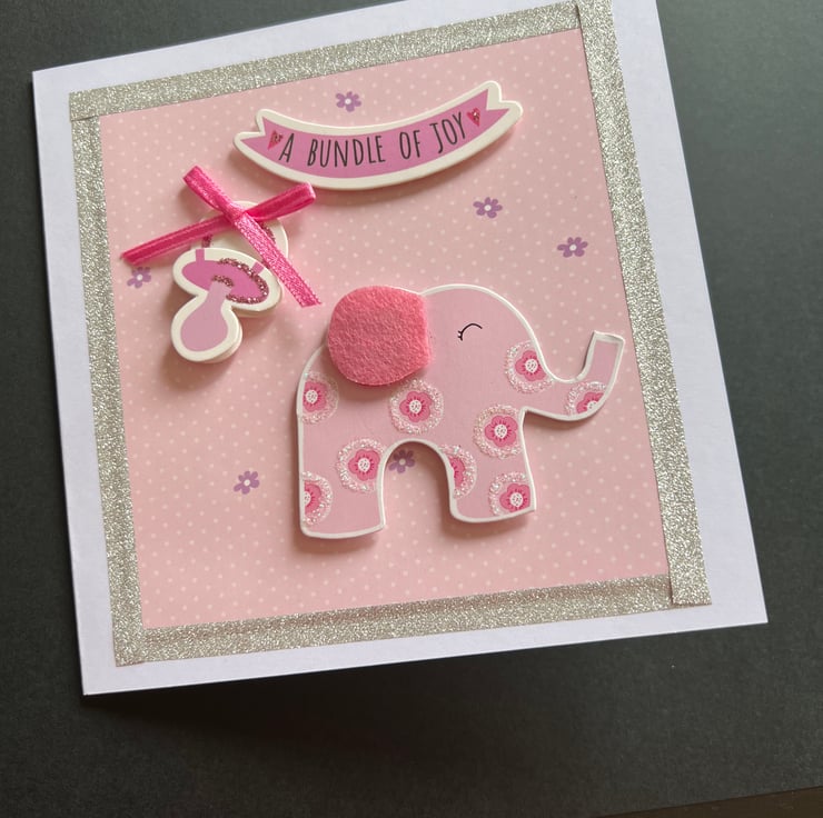 Pretty Original Handmade 3D card with envelope. New Baby Girl card