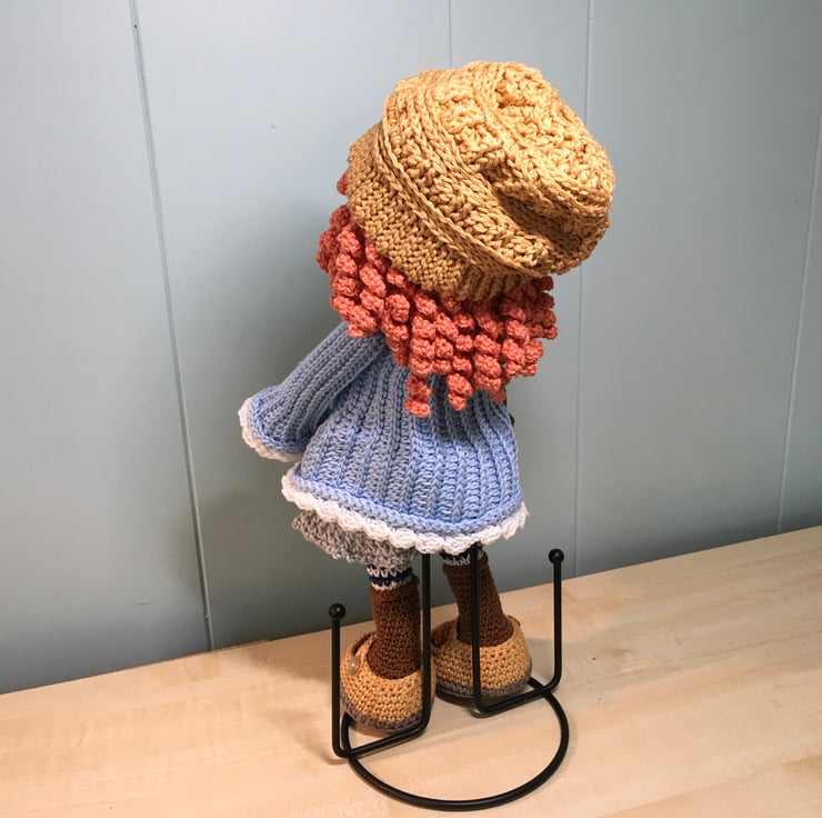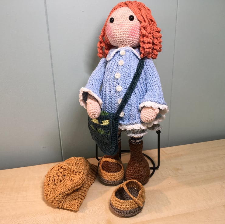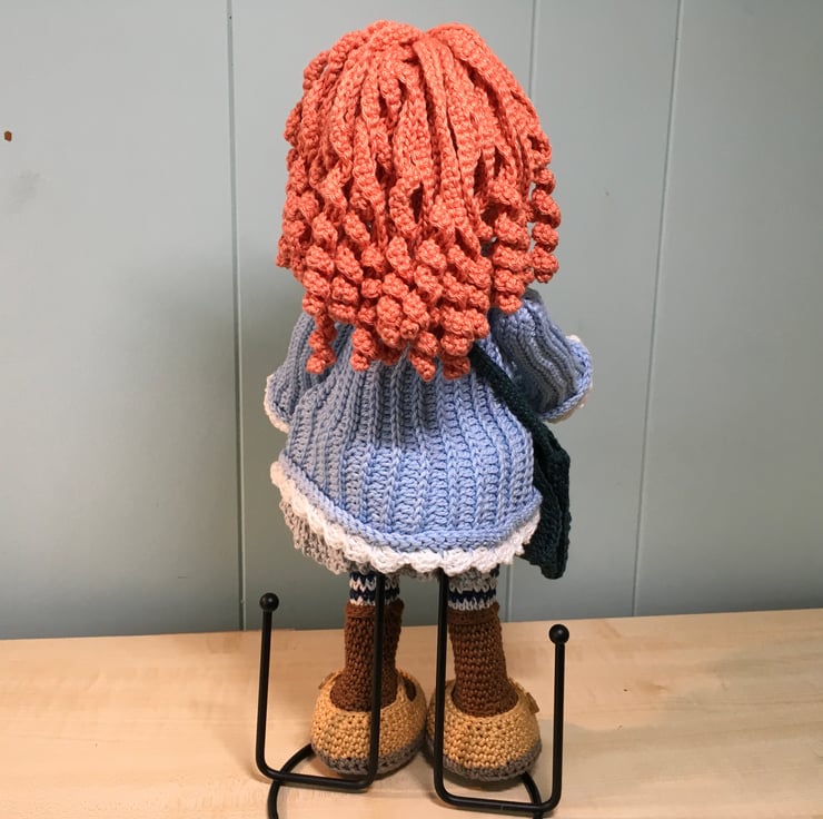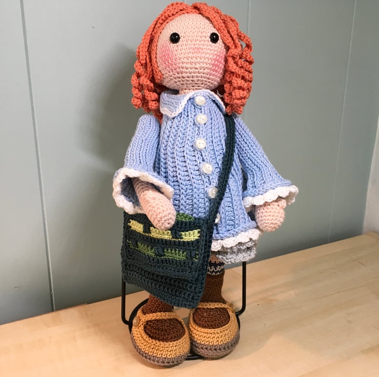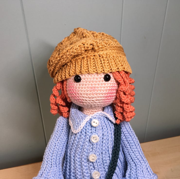 This young lady is called Smilla, Scandinavian for Smile and she has been busy all day as an office junior with aspirations. As they say “you have to start somewhere”. Her bright red ringlets have to be kept in check by her slouch beanie on windy days but can be removed and so can her messanger bag which she wears cross-body.