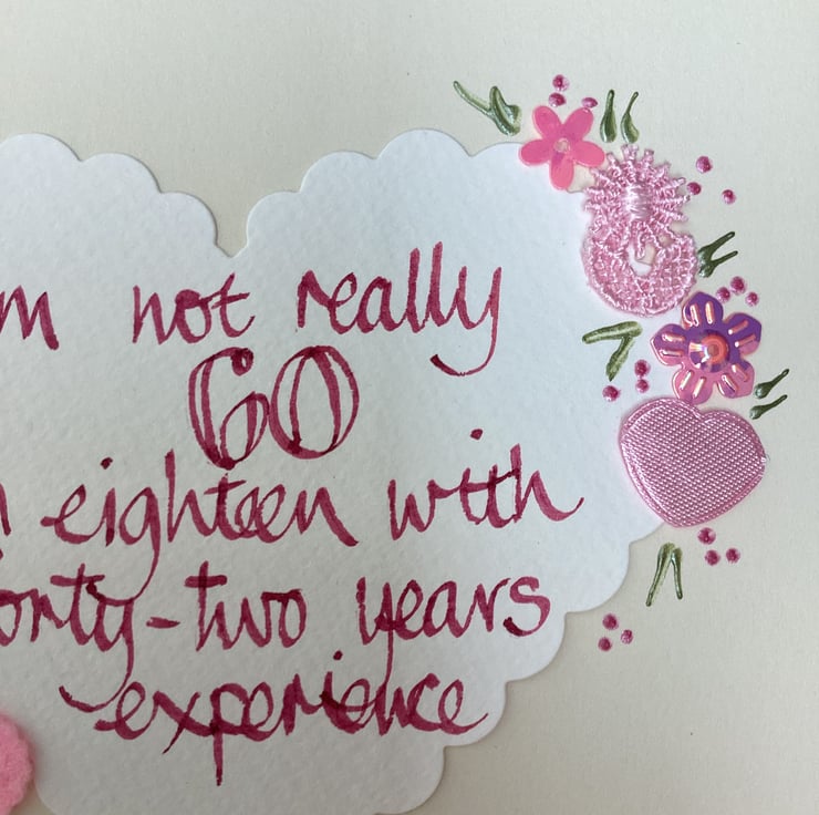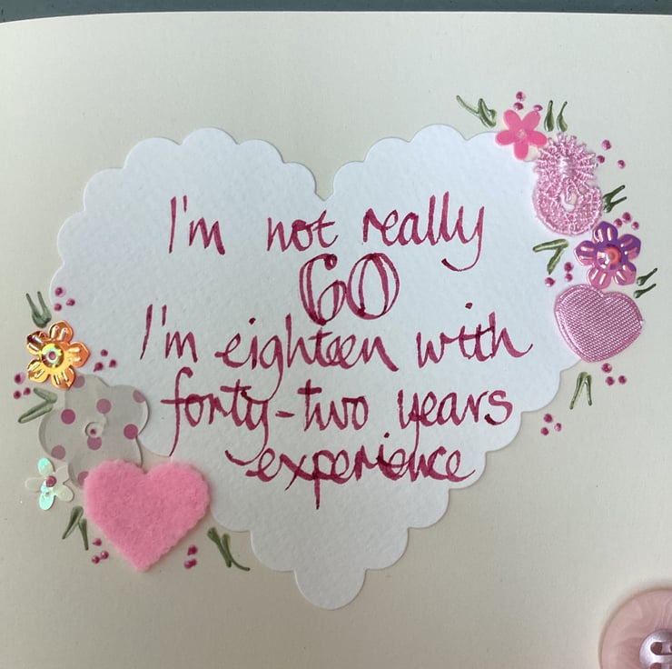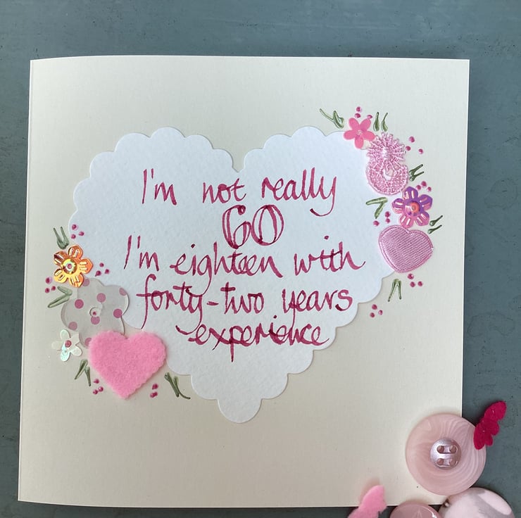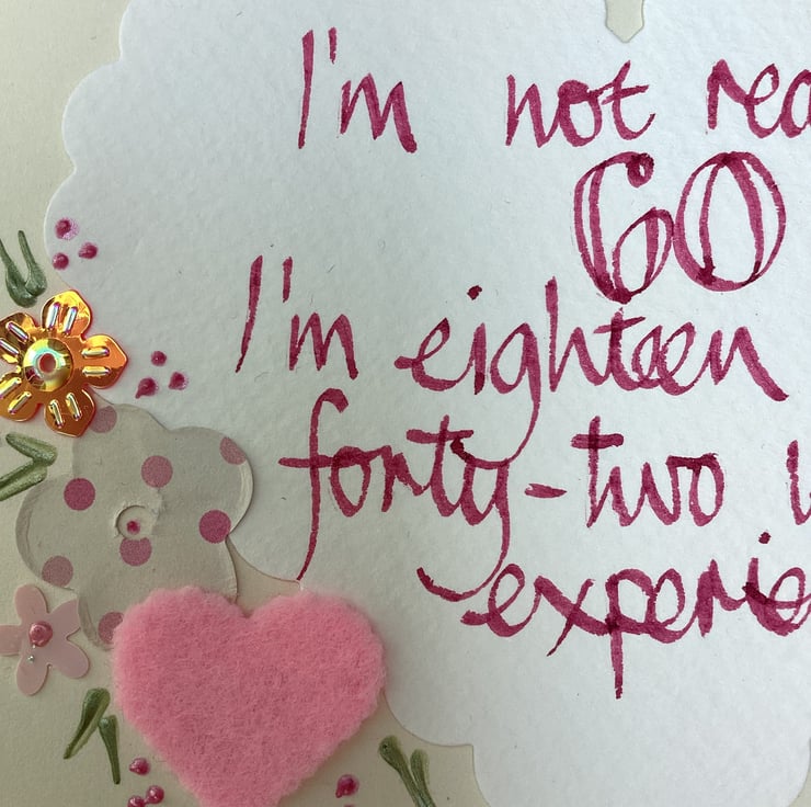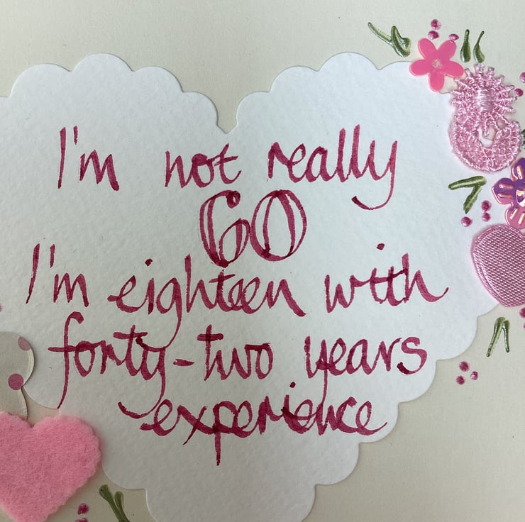 I’m not really 60,l’m eighteen with forty-two years experience.Handmade birthday card.