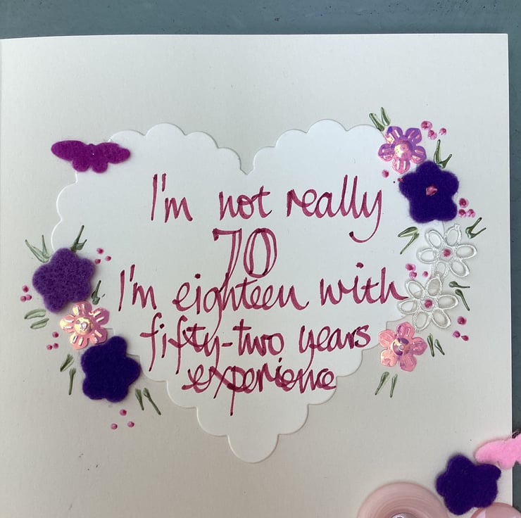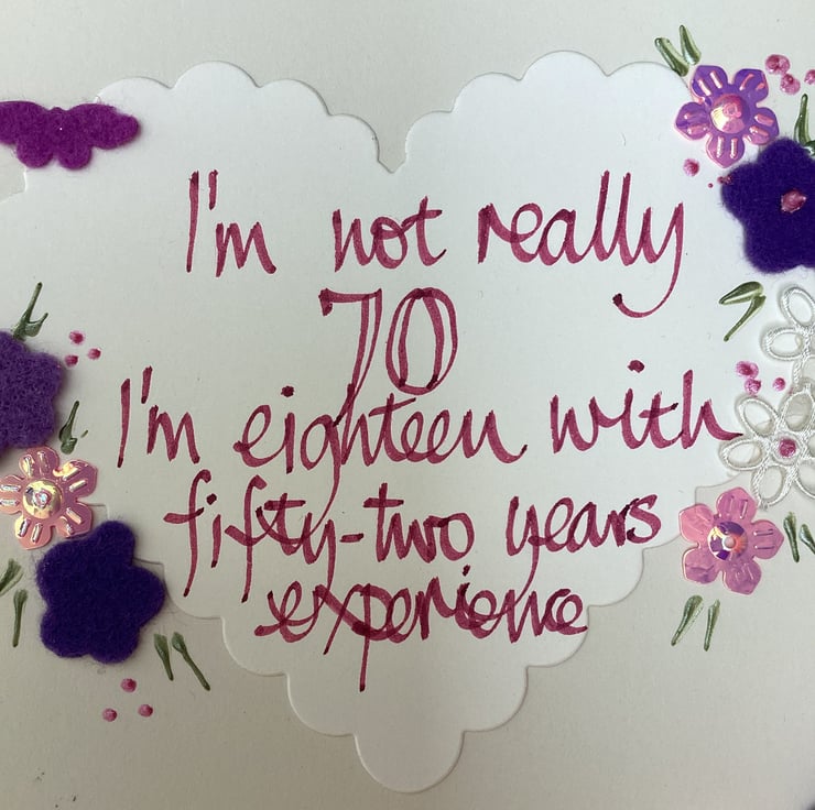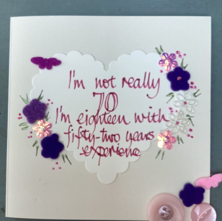 I’m not really 70 ,I’m eighteen with fifty-two years experience handmade card