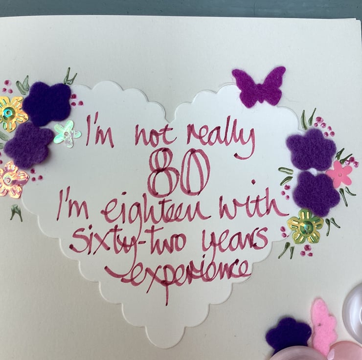 I’m not really 80 ,I’m eighteen with sixty-two years experience handmade card.
