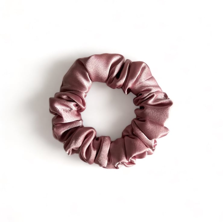Soft, rose pink satin scrunchie, handmade by me.