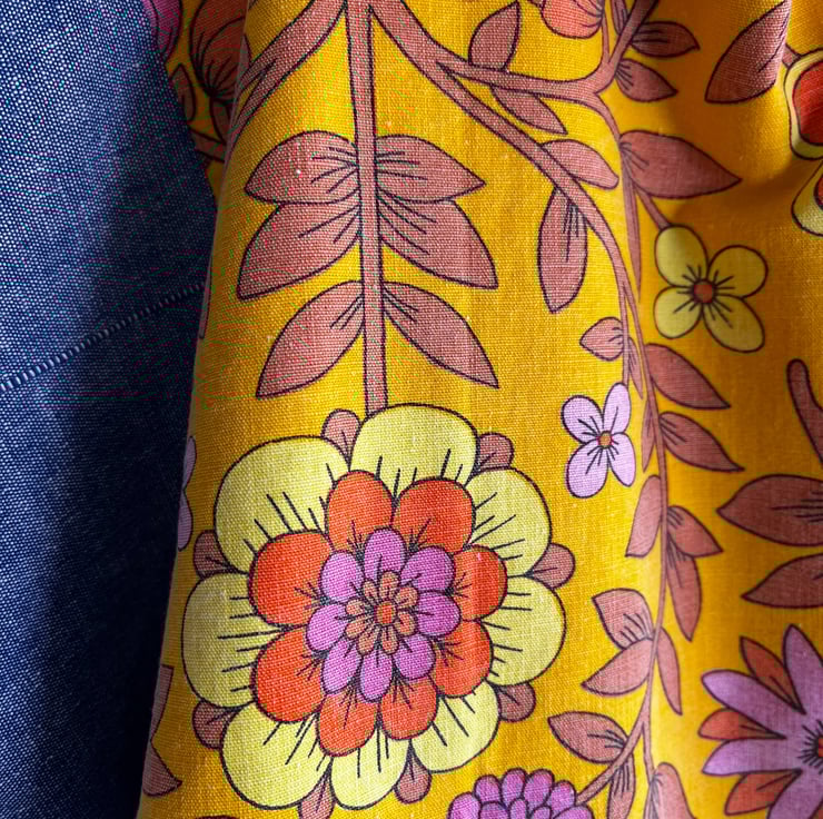 The colours of the reclaimed Roundelay fabric are a little faded but still very pretty.