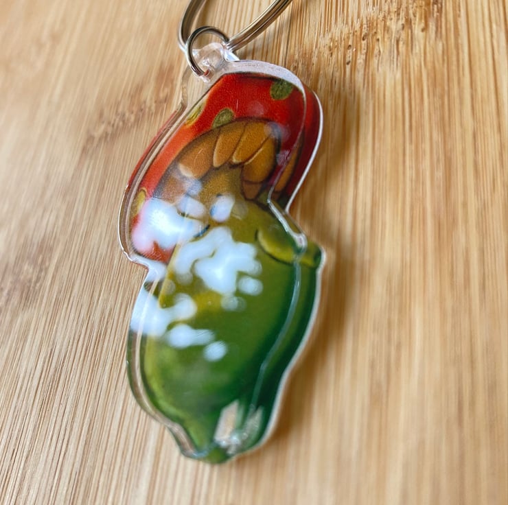 Created from my own original artwork, based on my love of nature and whimsy. This keyring is created from 3mm acrylic and is approximately 5cm x 2cm excluding the loop.