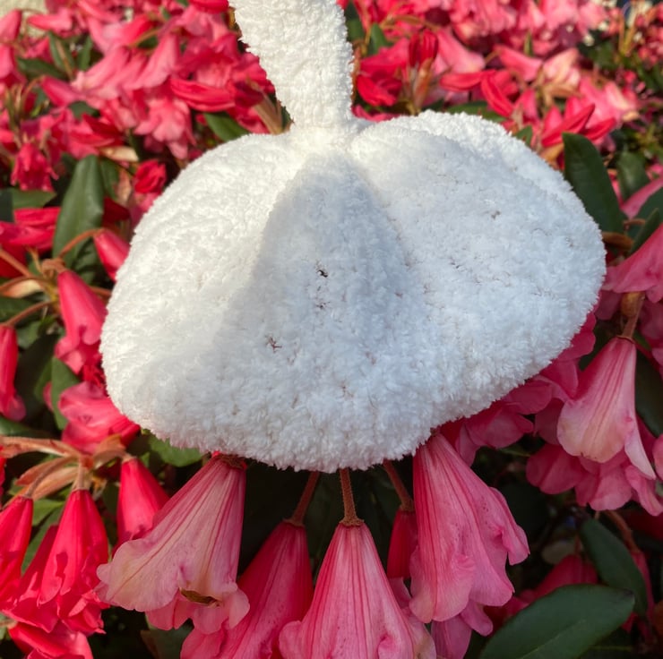 Handknitted using a supersoft fluffy yarn, this baby hat is perfect for little girls and super cute!