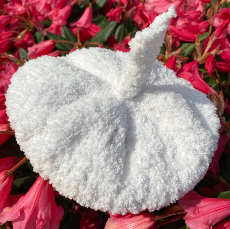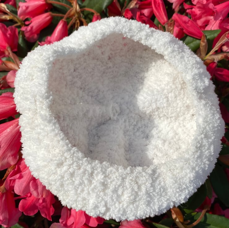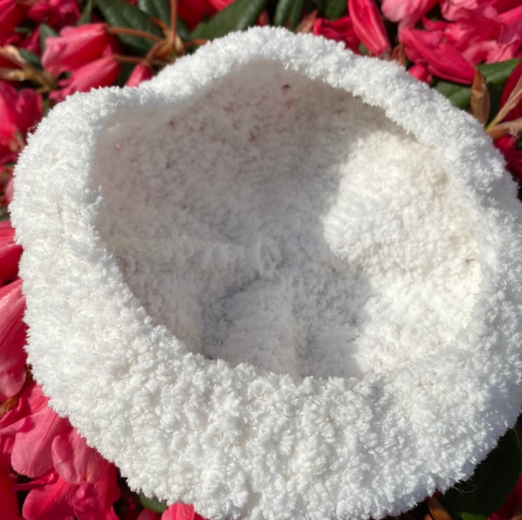 A supersoft, cosy, snuggly lacy white beret with a funky little topknot for babies aged 0-3 months.
