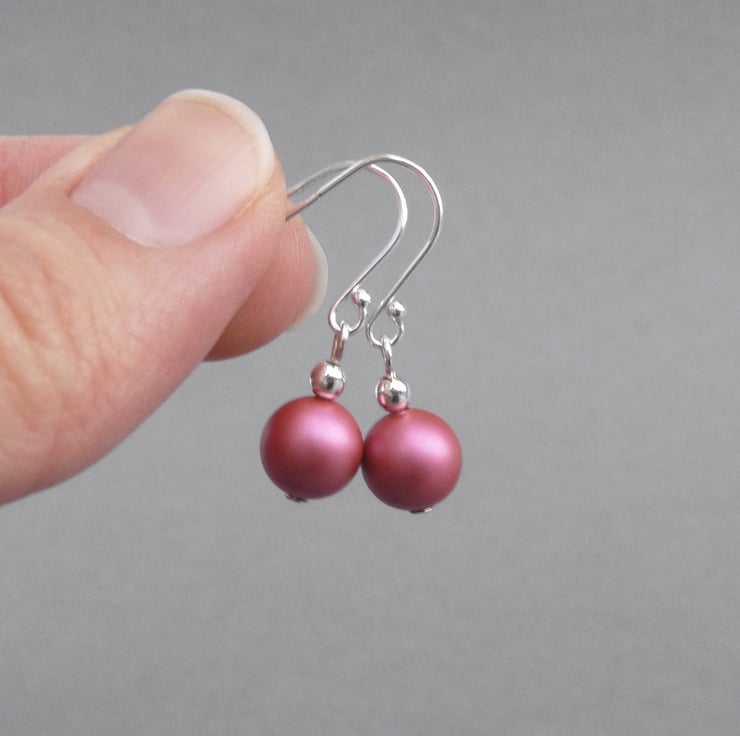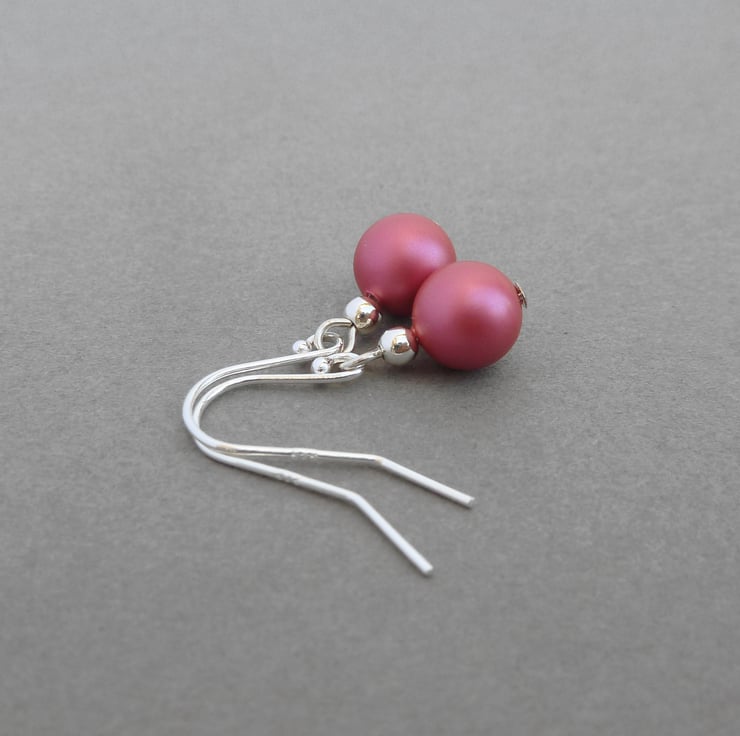 Raspberry Pink Drop Earrings - Simple Dark Pink Dangle Earrings -Pearl Jewellery
