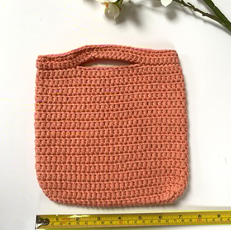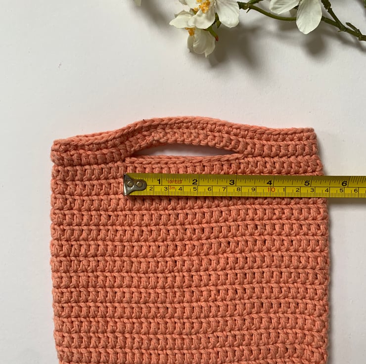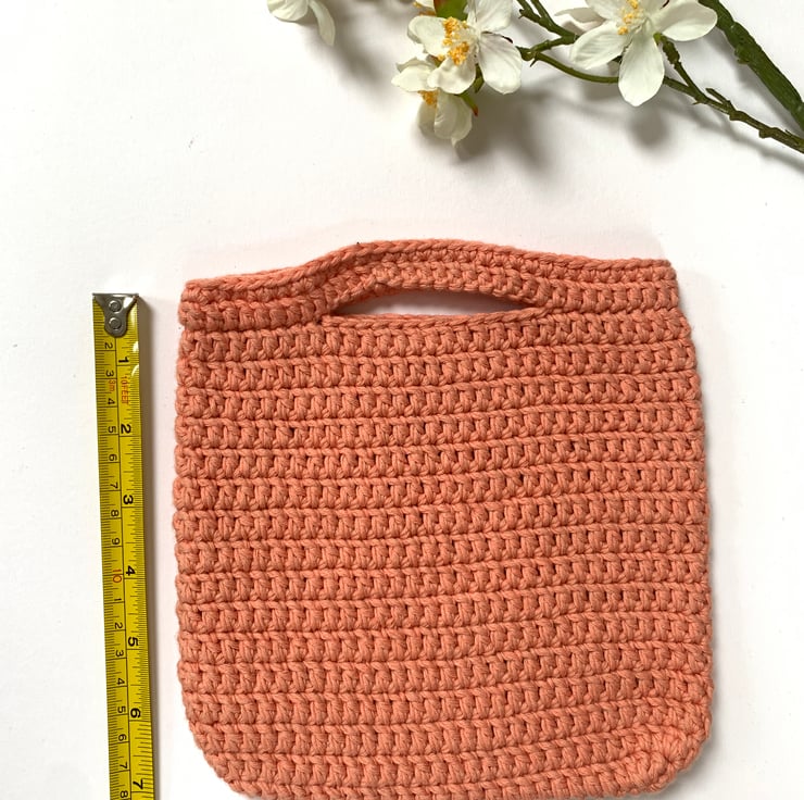 Miniature peach crochet bag, made from 100% cotton. Clutch capacity, perfect for the essentials!
