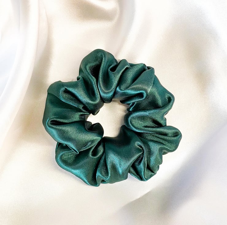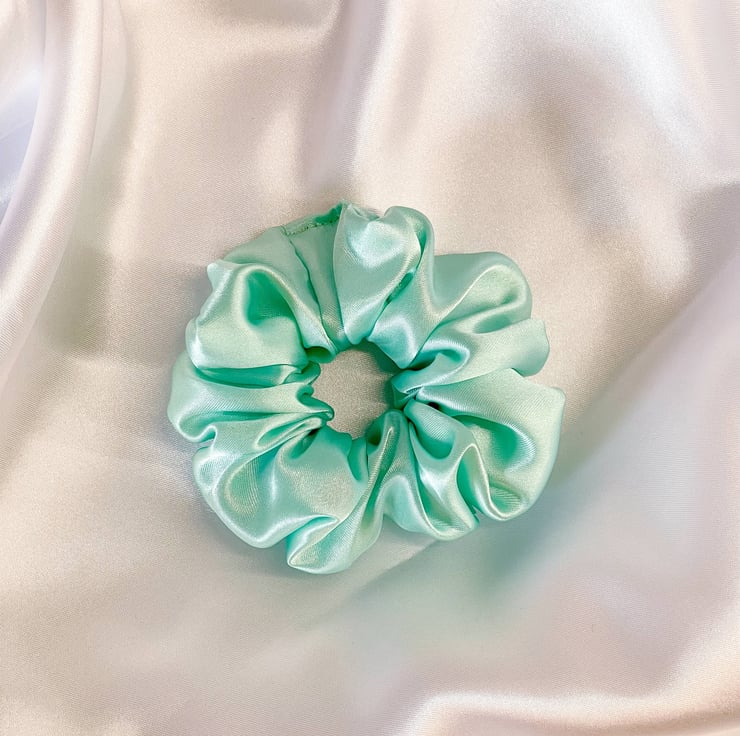 I made this green scrunchie using high quality satin fabric. Every item is hand made using my sewing machine in my bedroom. Buying this scrunchie you support my small business 。^‿^。
