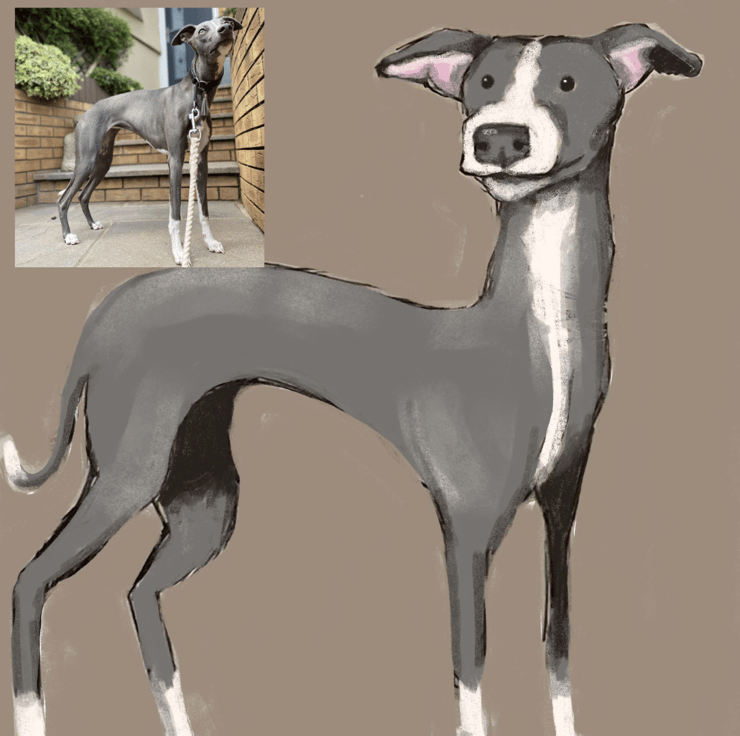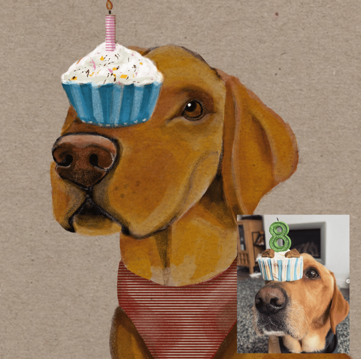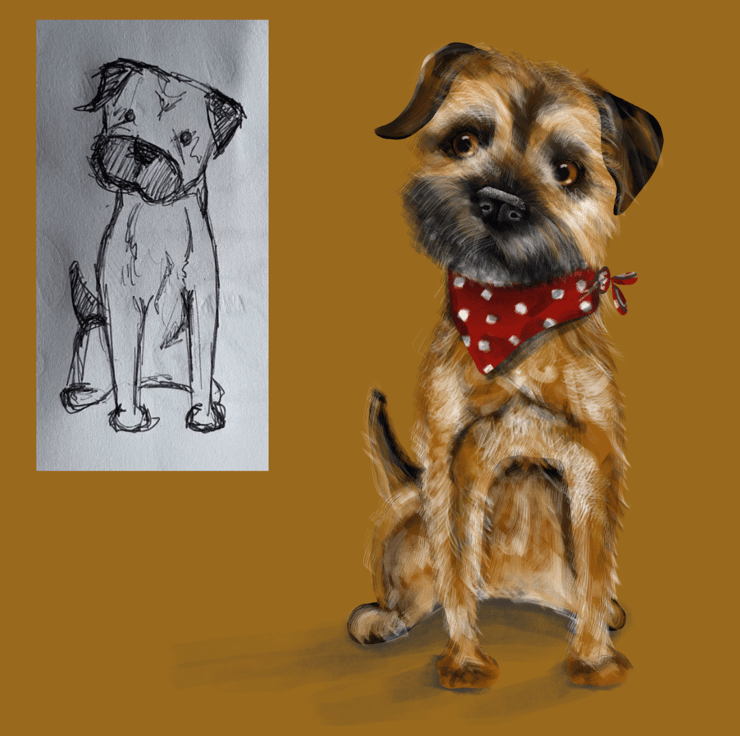 This pet portrait caricature is a stylised representation of your dog, cat or family pet.