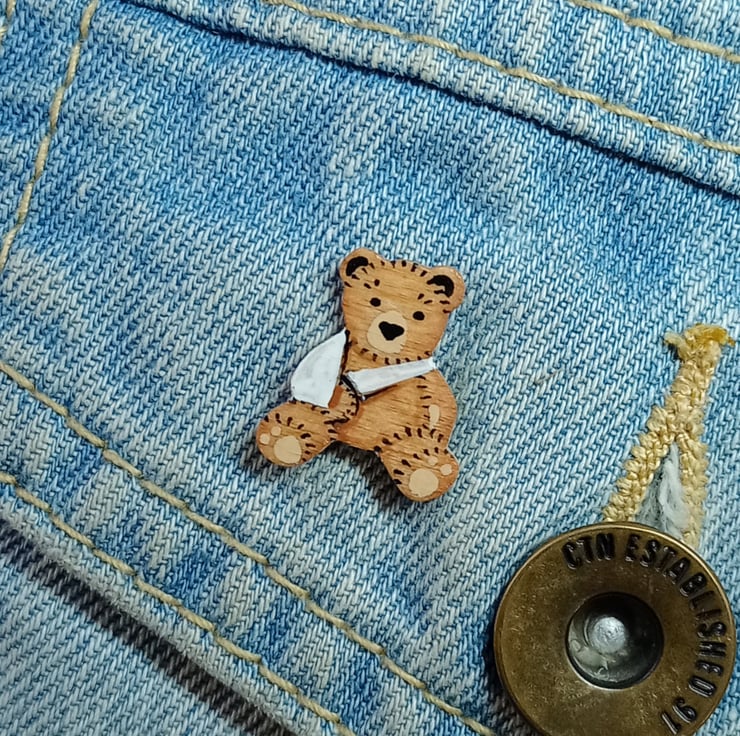 A handmade tiny teddy bear pin to bring a smile to someone with an injury! Both children and adults love these cute tiny bears and this gift will show you care and that you are thinking of them!