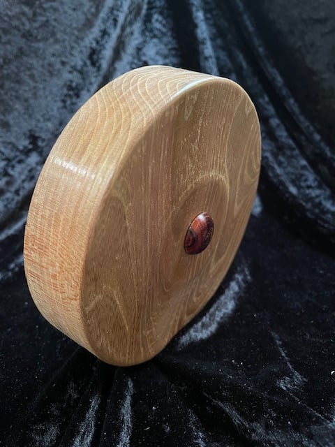 A simple quartz movement set into an Elm block approx 5 and a half inches in diameter. The clock itself is 4" diameter. Finished with multiple wax layers to give and keep a shine