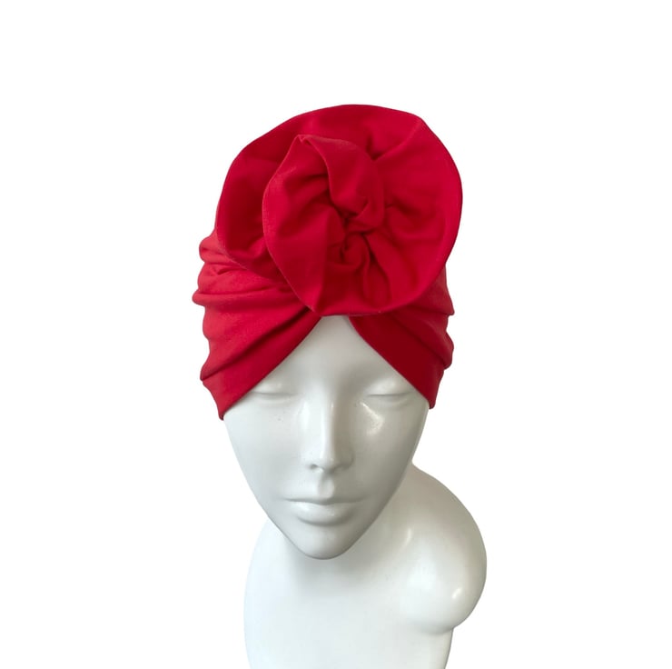 This rosette turban hat will fit the standard adult's head (21''-23'').