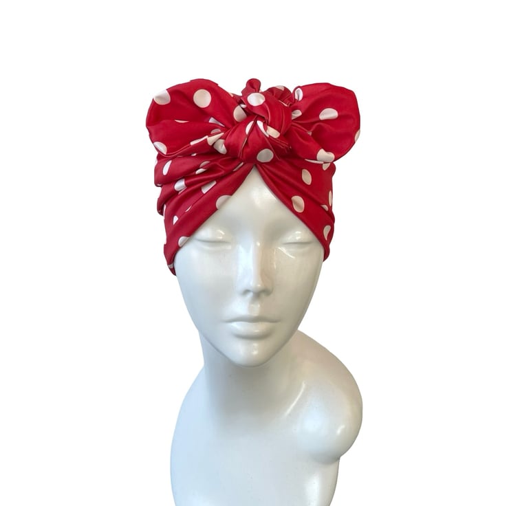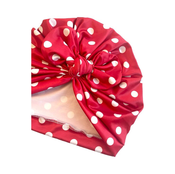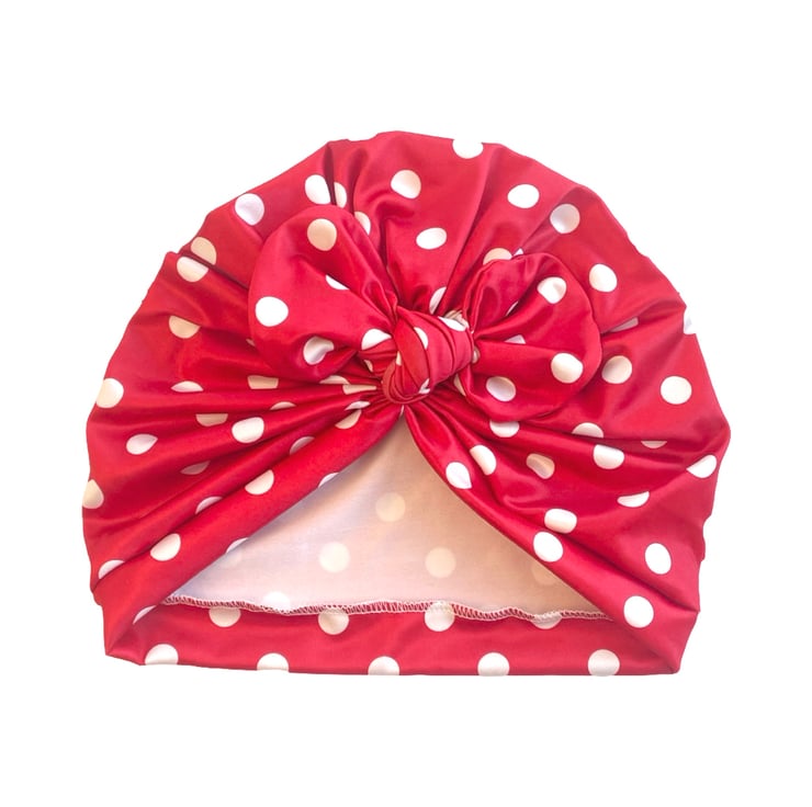 This is a soft and stretchy single-layer (not lined) design lycra jersey turban hat with a bow.