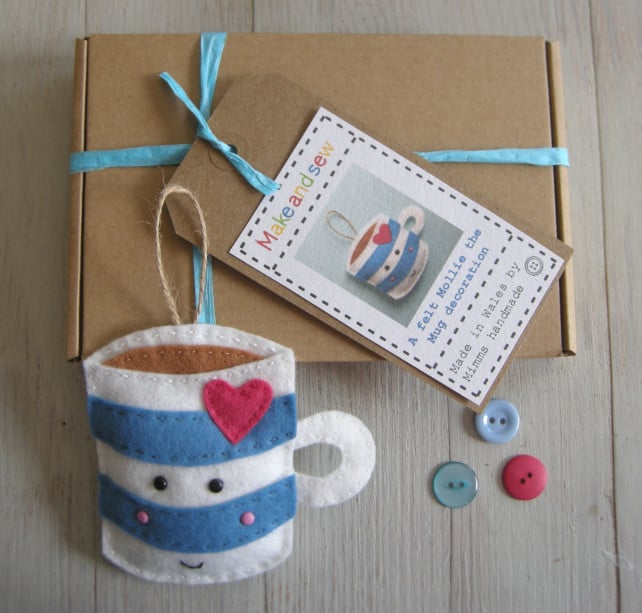 Make and sew a cute stripey Mug. Would make a great gift for tea or coffee lovers. make it for yourself or would make a great gift for someone who loves sewing.