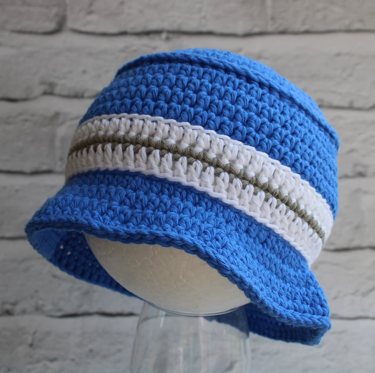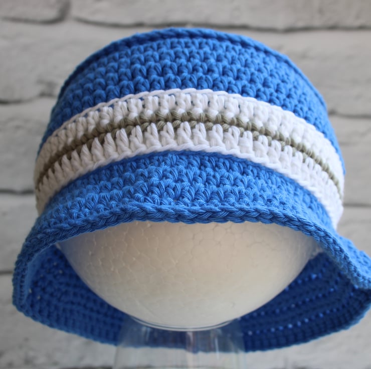 Crocheted using 100% cotton yarn, this sun hat is soft and comfortable to wear.