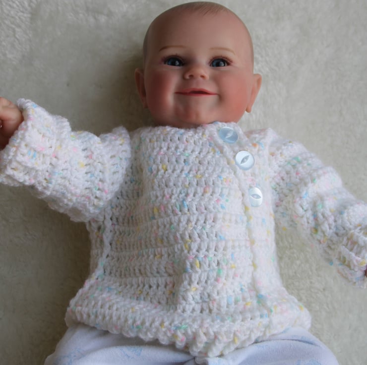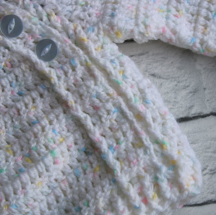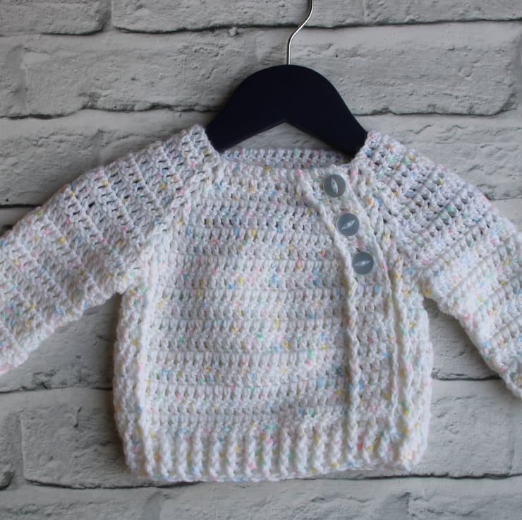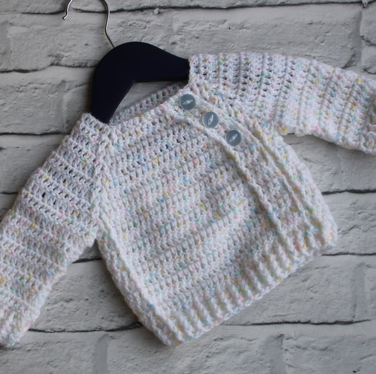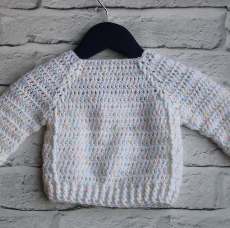 A sweet and simple baby sweater that is perfect for layering over baby grows/onesies during the cooler weather to keep your baby warm.