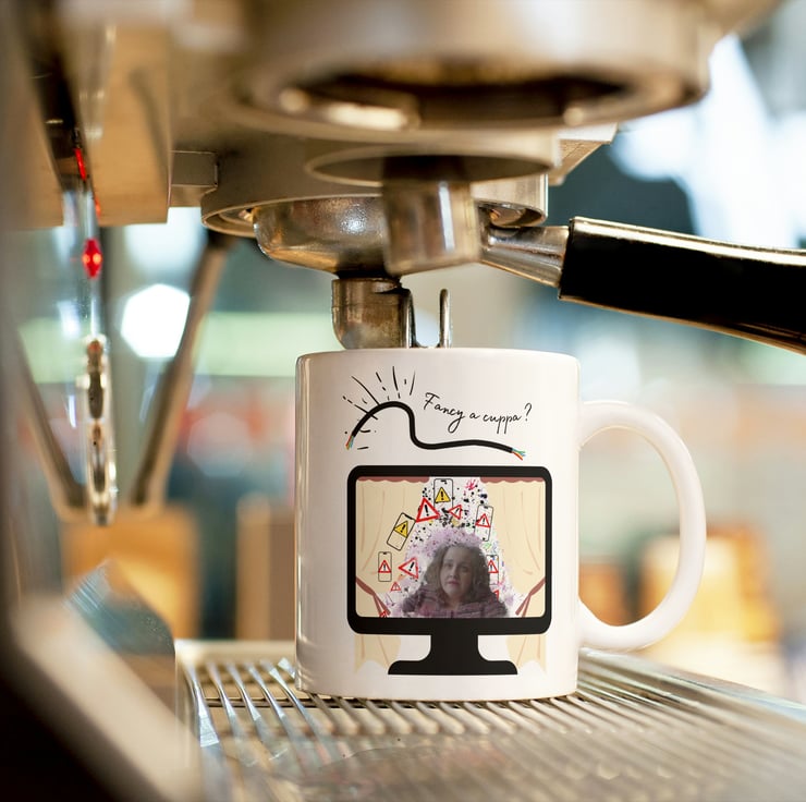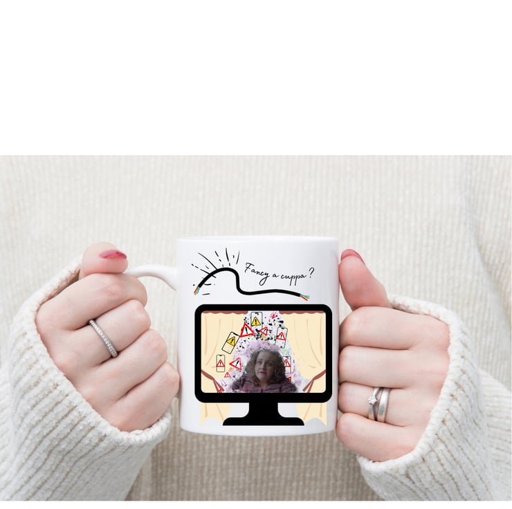 Funny coffee mug based on the popular baby reindeer series. Mug features Martha and reads “fancy a cuppa” mug can also be personalised