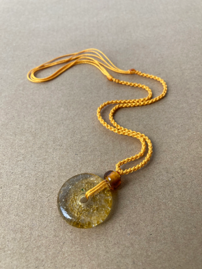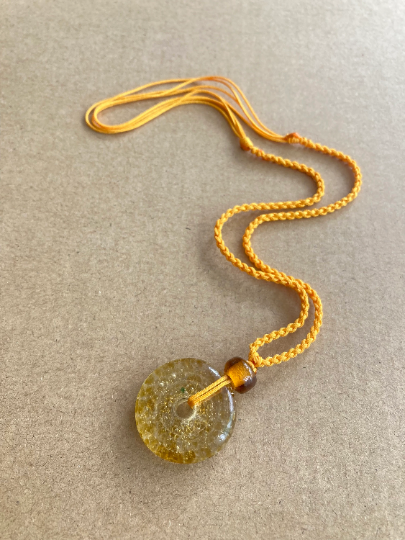 Golden Yellow Vintage Glass Donut Pendant Necklace - Birthday gift - gift