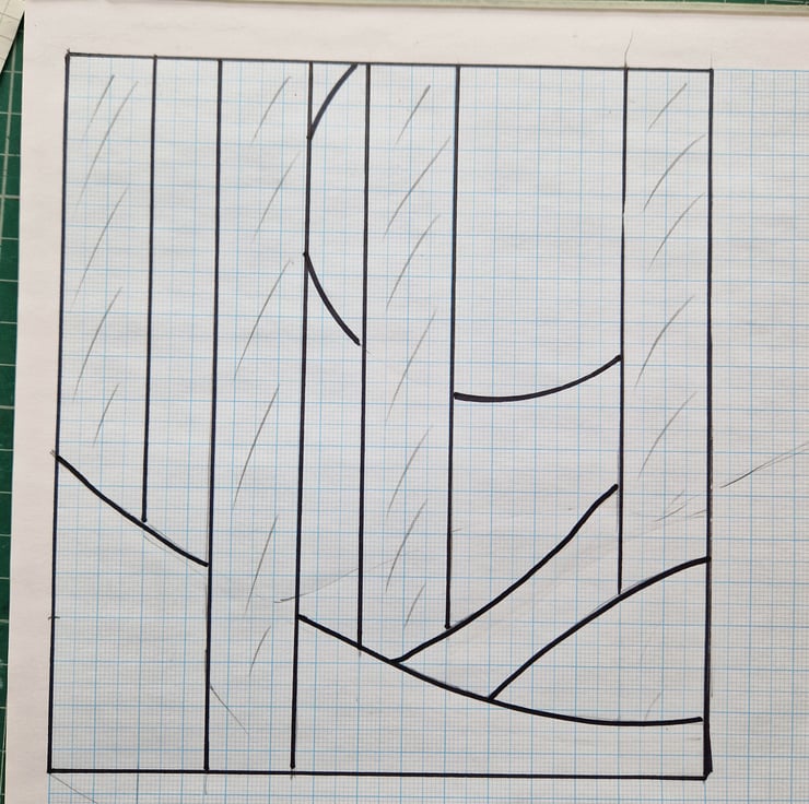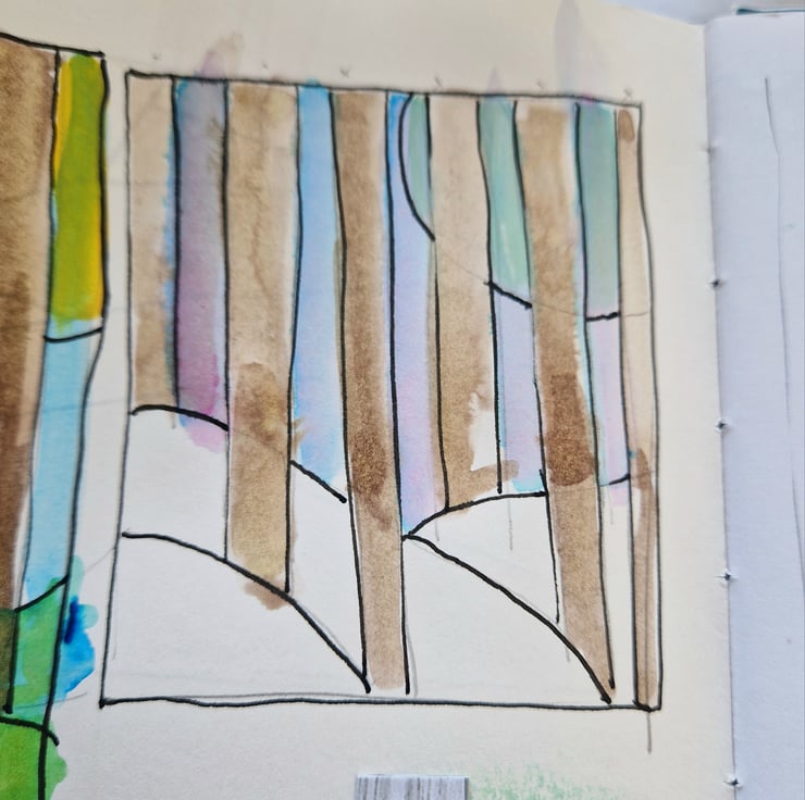 This panel has a lovely stylised landscape design in strong contrasting colours.