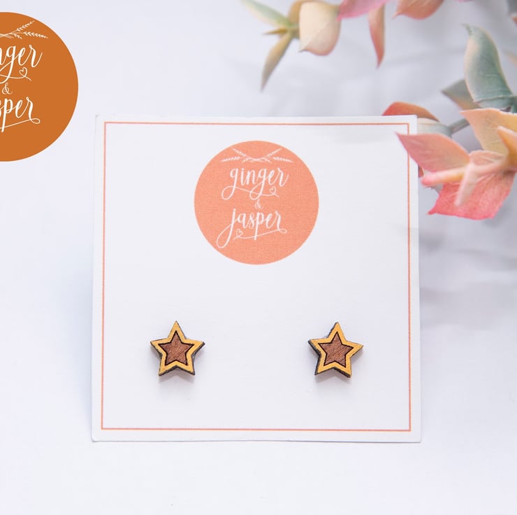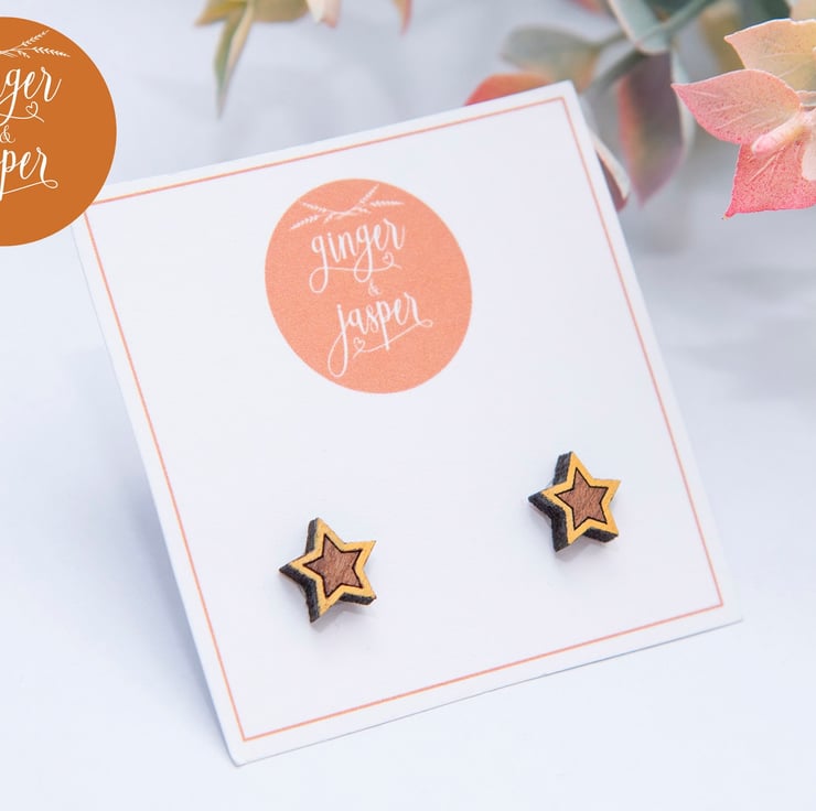 These gorgeous and dainty, wooden star earrings are hand-painted and finished with stainless steel, hypo-allergenic earring posts and butterfly backs. They will be delivered to you on a Ginger & Jasper branded card, as pictured.