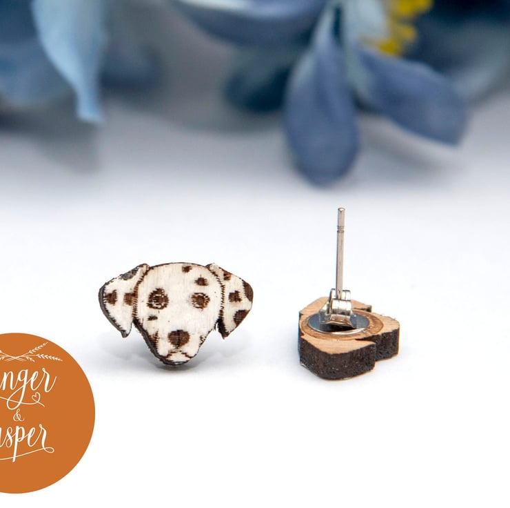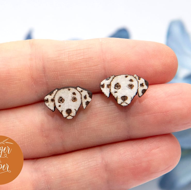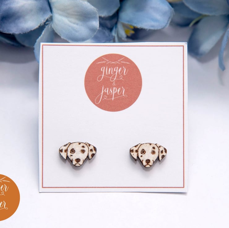 These gorgeous and dainty, wooden Dalmatian dog earrings are laser cut and hand-painted in your choice of colours to match your furry friend! They have stainless steel earring posts and butterfly backs and will be delivered to you on a Ginger & Jasper branded card, as pictured. Size - 15x9mm
