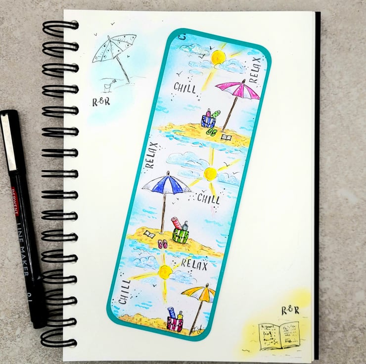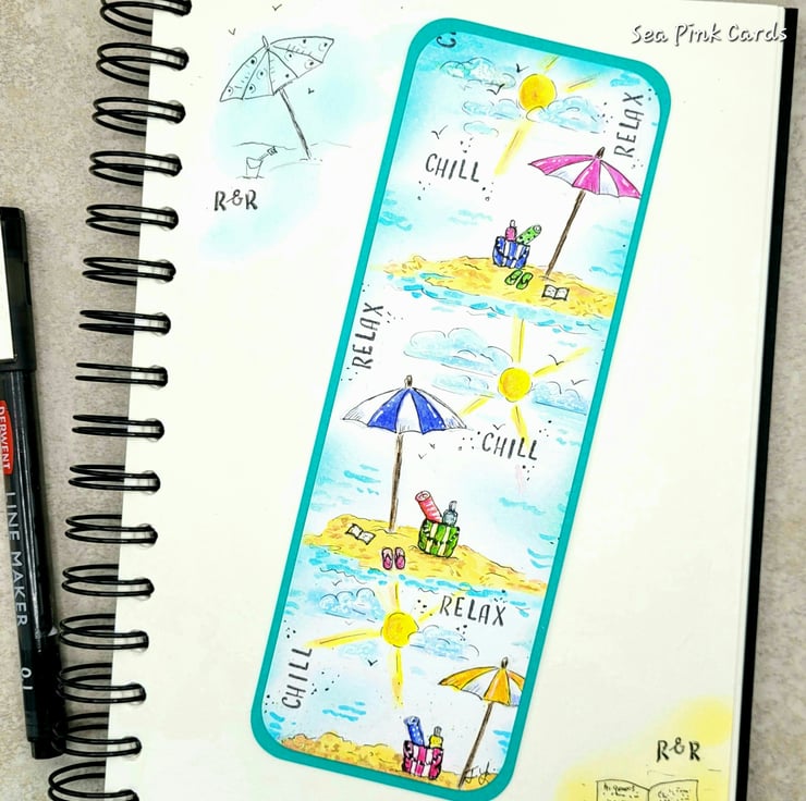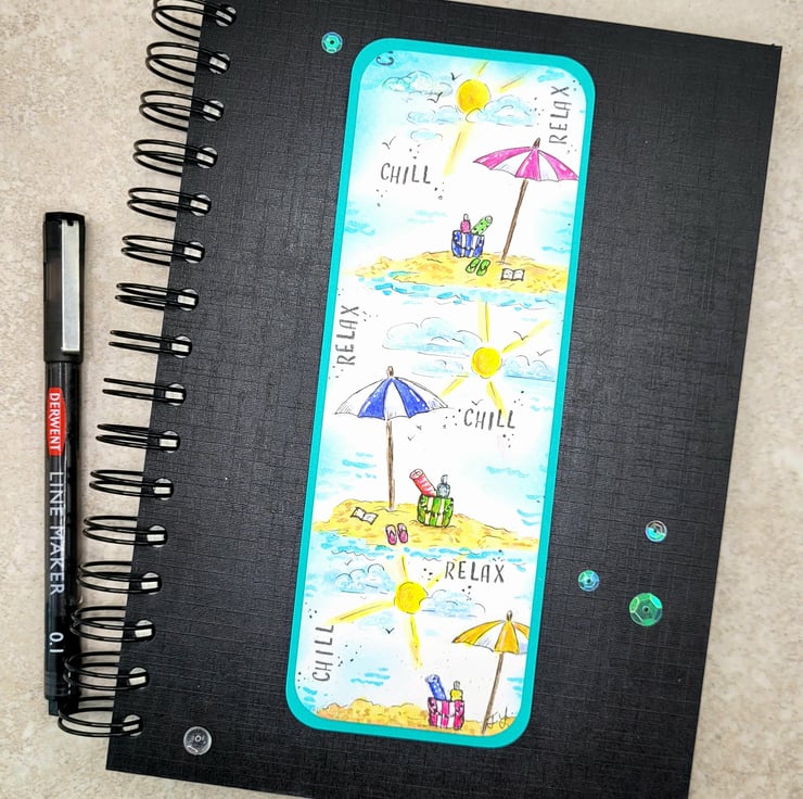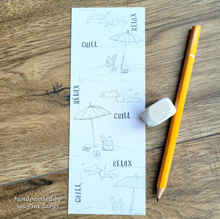 An original handpainted bookmark, with a fun relaxing day on the beach vibe. Chill, relax and read a good book! This one-of-a-kind bookmark has been sketched and painted by hand in my craftroom. Measuring 6.5 x 18.5 cms, it is painted on heavyweight 300gsm watercolour card, which I have backed with thick 270gms co-ordinating coloured card. This makes the bookmark sturdy and durable.