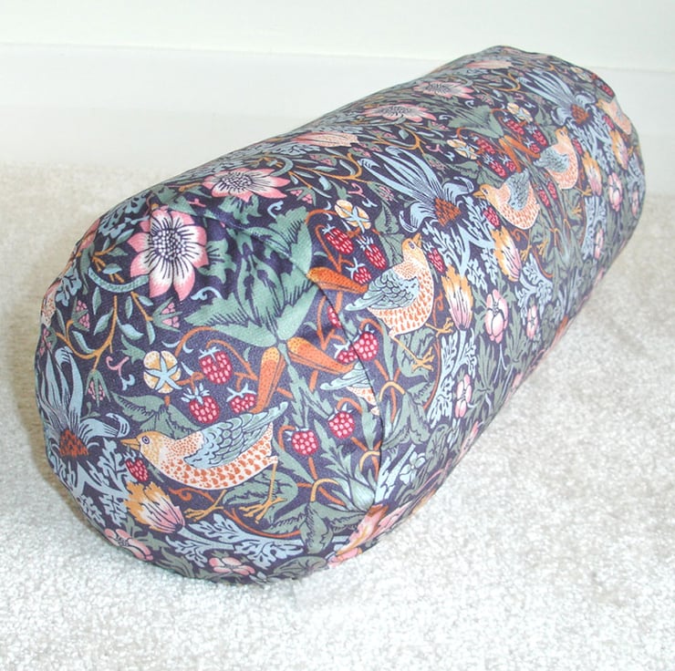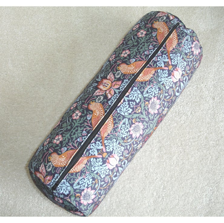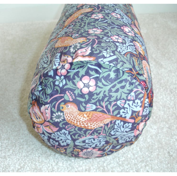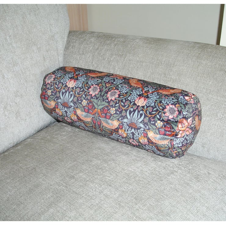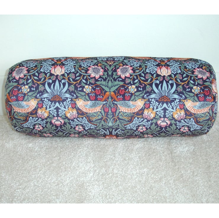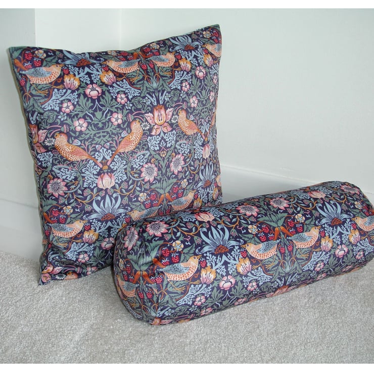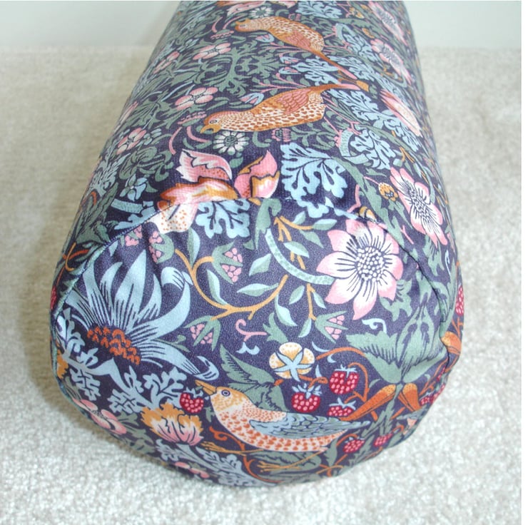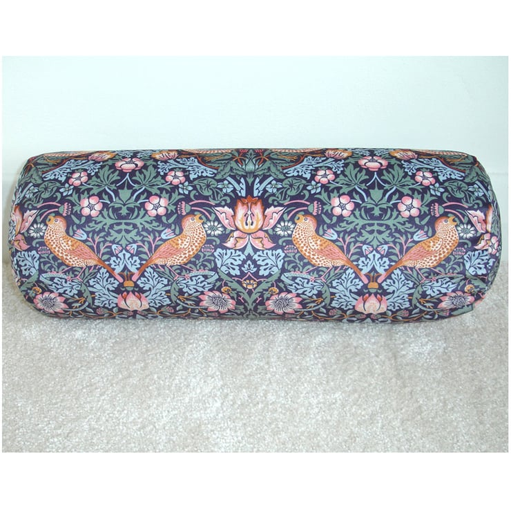 Velvet Bolster Cushion Cover William Morris Strawberry Thief Blue 6x16