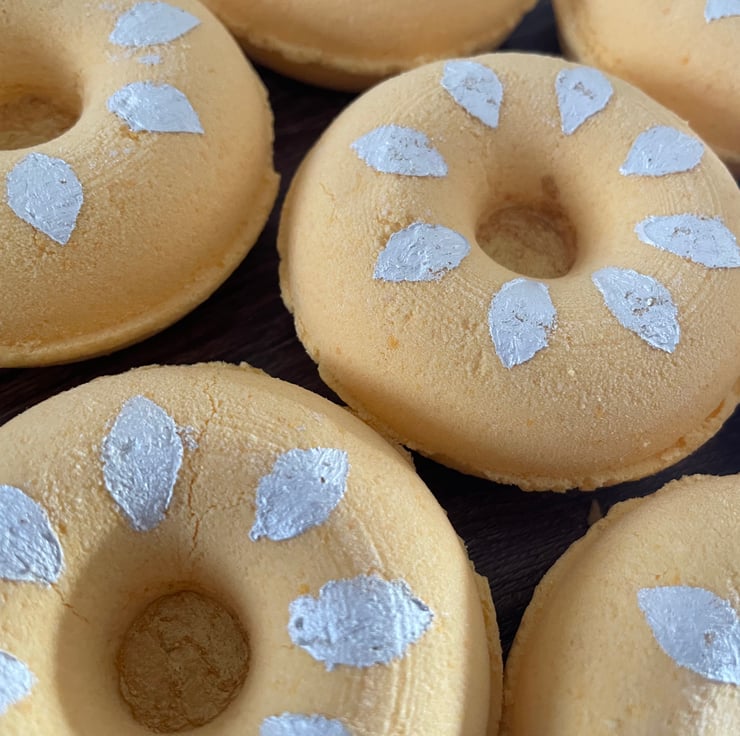 A lovely yellow bath bomb with a warm, fresh floral scent, very similar to a popular perfume.