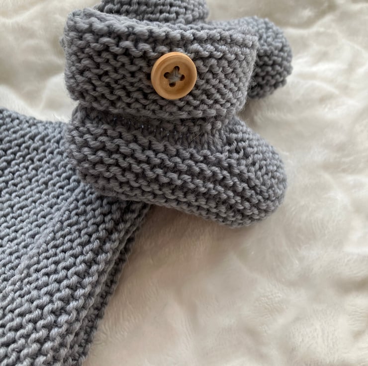 Hand knitted baby boy’s coming home/matinee set. I have knitted this little set in a mid-grey coloured pure merino wool, which is beautifully soft and warm for your precious little one. The jacket and booties are finished with wooden buttons, and the hat is finished with hand made pom-poms. They have been knitted using garter stitch - a lovely stretchy stitch that allows for greater movement. Would make a great baby shower gift!
