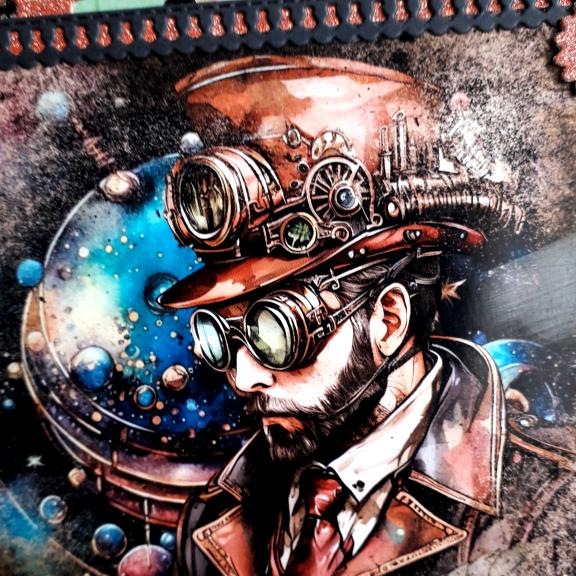 A Father's day card featuring a steampunk gentleman on a fantasy galaxy background.