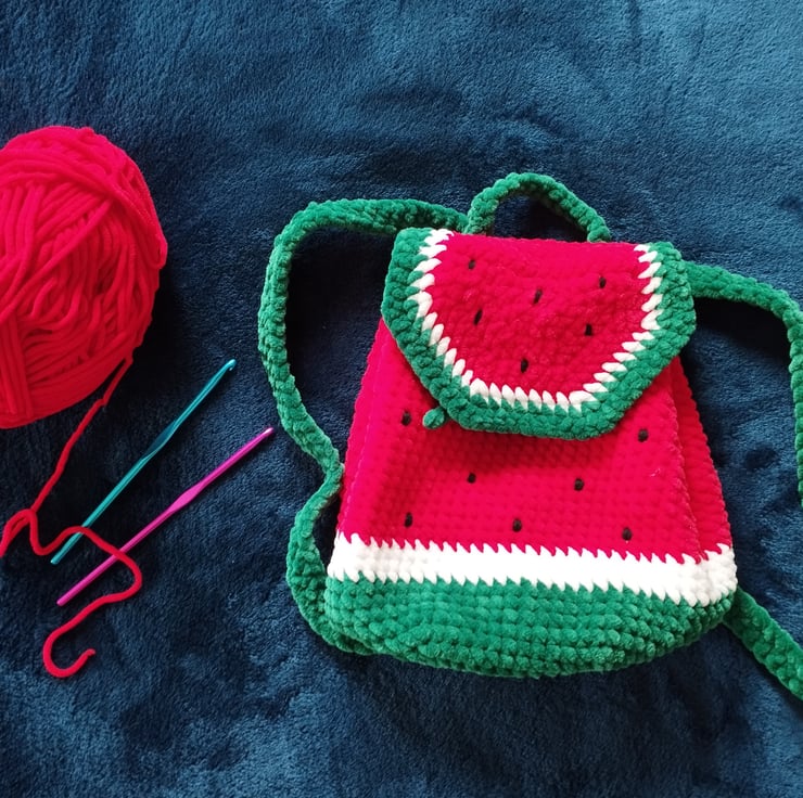 This gorgeous soft kids' backpack Watermelon is the perfect gift for boys and girls, or even for your girlfriend! It's crocheted with premium acrylic yarn for amigurumi, so it's super soft and comfortable. You can take it with you on picnics, walks, hikes, shopping trips, or just about anywhere! It's a great accessory for every occasion.