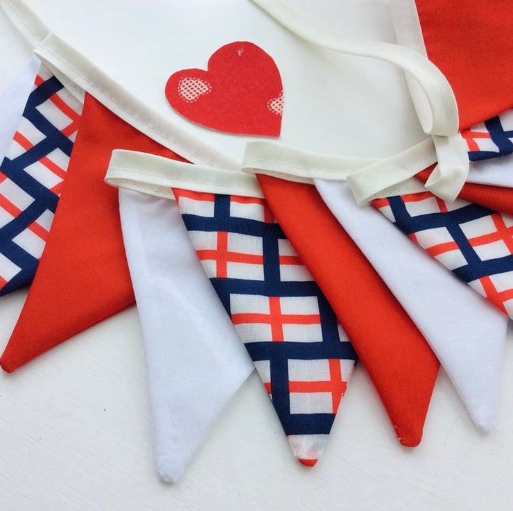 Great for supporting England this summer in the World Cup, this string of 12 red and white England inspired small flag bunting makes it great for St George’s Day or events throughout the year like Euro 2024.