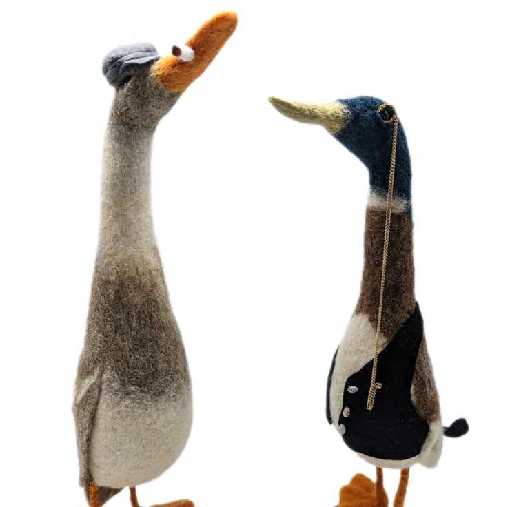 My runner ducks are made from British wool and personalised with handmade items of your choosing. I will walk with you through the process to make sure your duck is everything you want it to be. Maybe you want them to reflect a loved one or an era in time. Anything is possible!