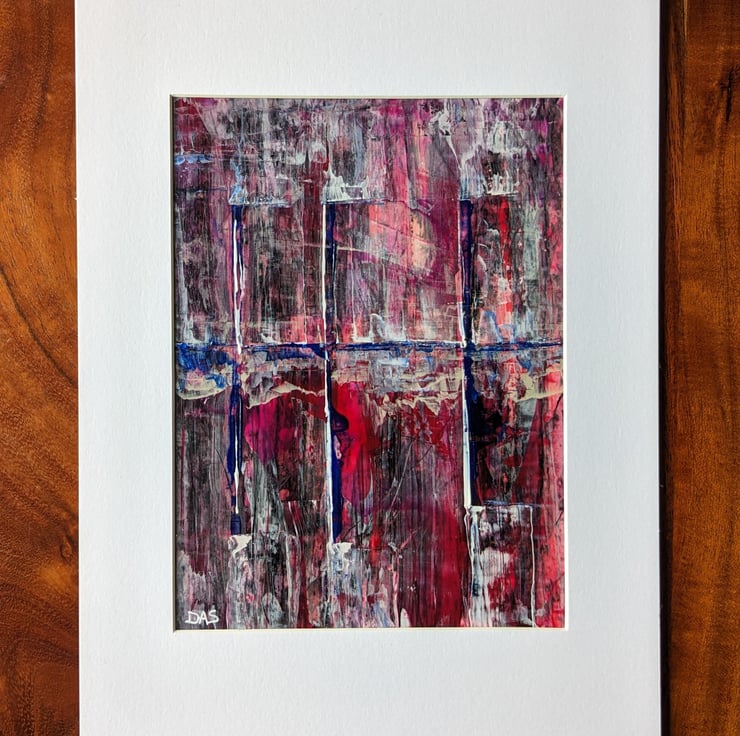 An original acrylic expressionist/abstract painting on paper. Signed and varnished. A4 frame mount and cardboard backing board included. Glued and ready to frame. Painting size is 18.5 x 13.5 cm (7.25 x 5.25 inches). Total Size including mount is A4 (29.7 x 21 cm) (11.7 x 8.3 inches).