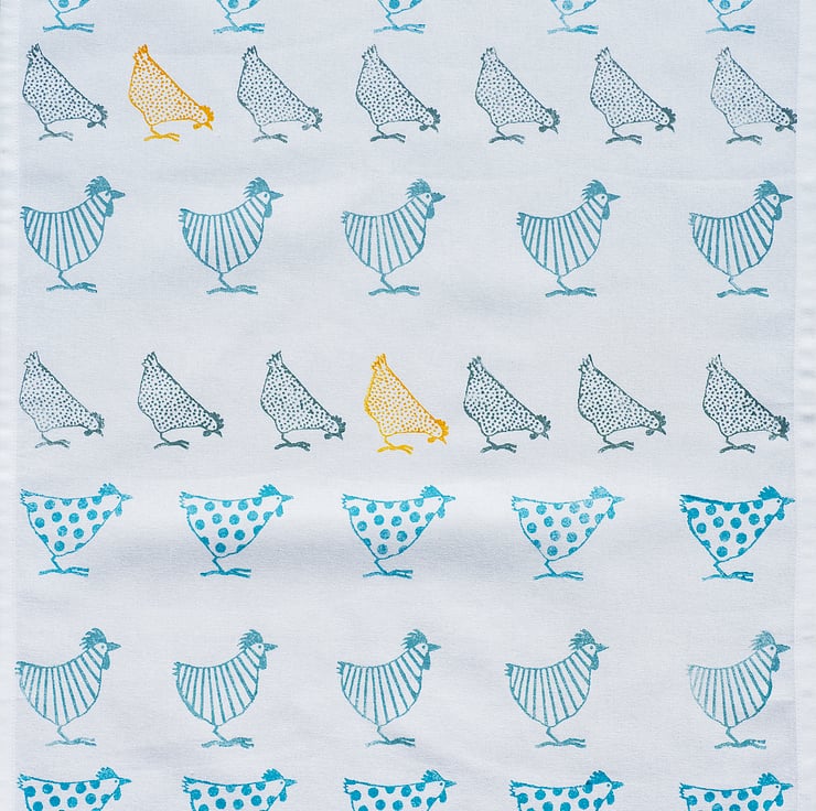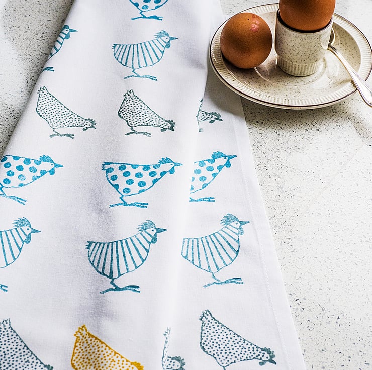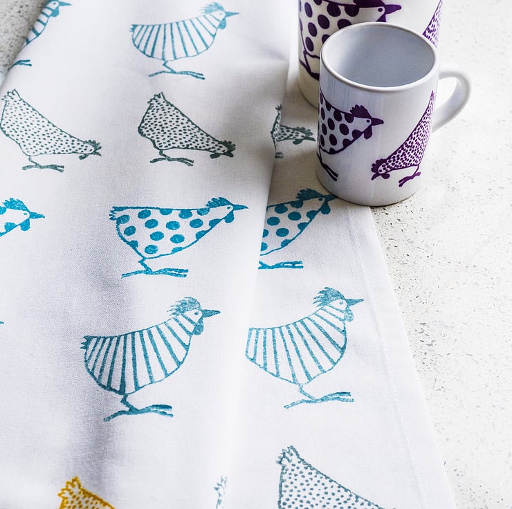 A beautiful hand printed 100% cotton tea towel with a lovely chicken design. It would make the perfect housewarming, hen party or wedding gift or a gift for a wildlife, nature or countryside lover - or someone who keeps chickens!