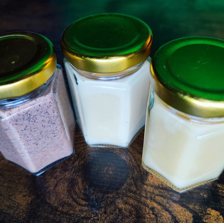Miracle Balm - can be used on any dry areas on the skin and also works great on the furry members on dry paws. Contains - Candelilla wax, shea butter, sweet almond oil, avocado oil, and lavender oil.