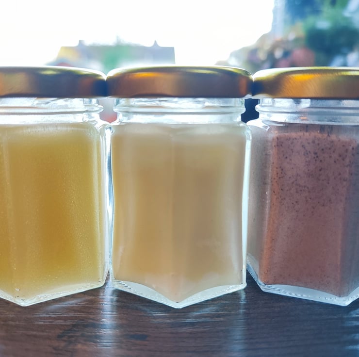 Scrub up caffeine Scrub - All over body scrub and works it's magic as a facial scrub. Contains- Shea butter, organic extra virgin coconut oil, avocado oil, benzyl alcohol, ground coffee, lavender oil and eucalyptus oil.