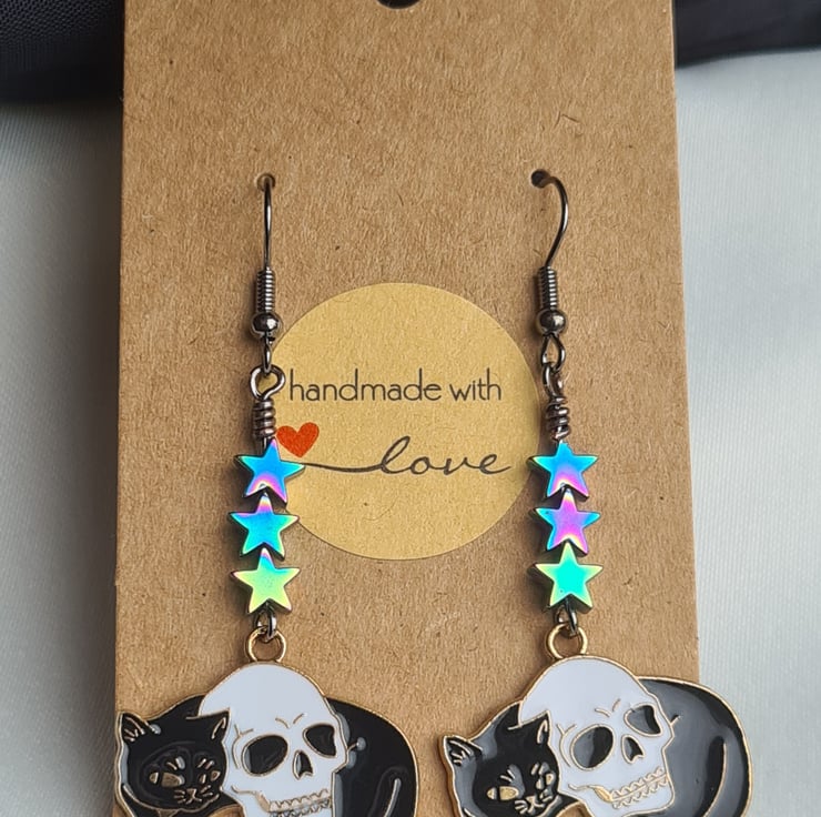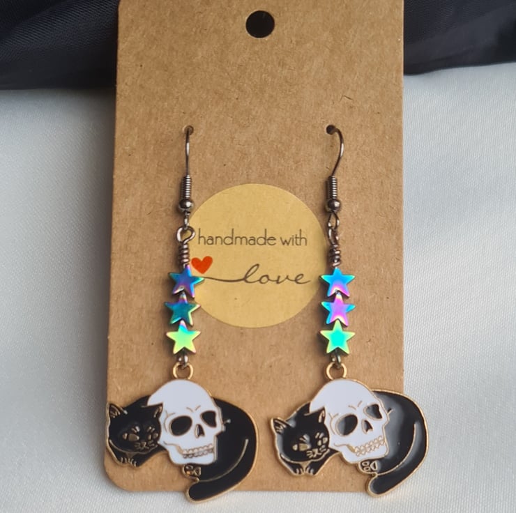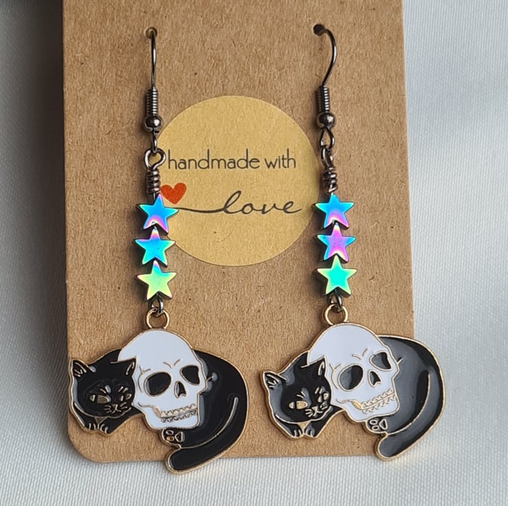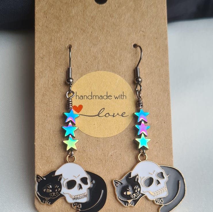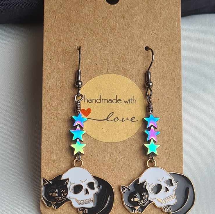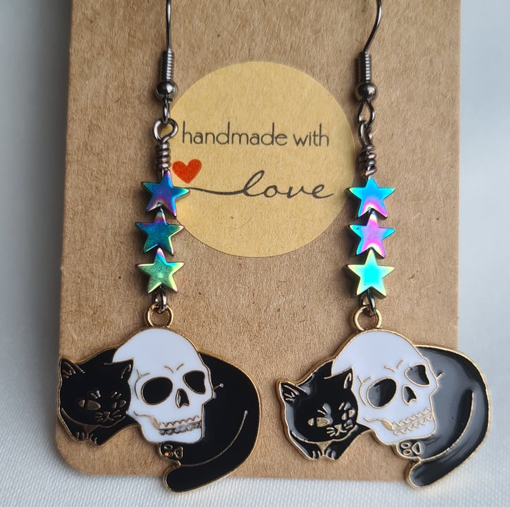 Cat and Skull Charm Earrings - Star Beads.