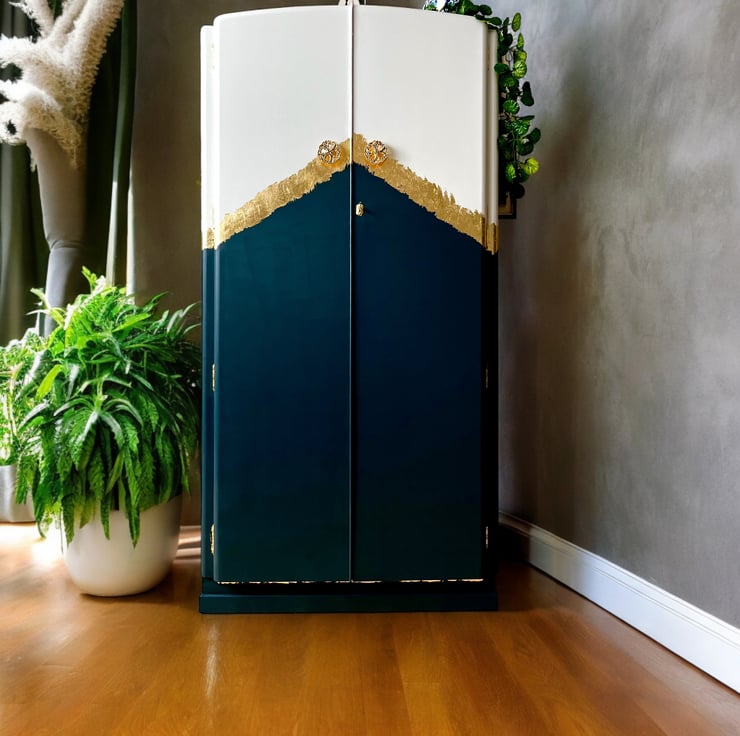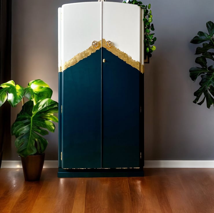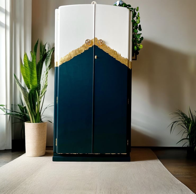 Stunning Gentelmen wardrobe armoire painted in Fusion Mineral Paint with golden leaf and clear wax applied for extra protection.