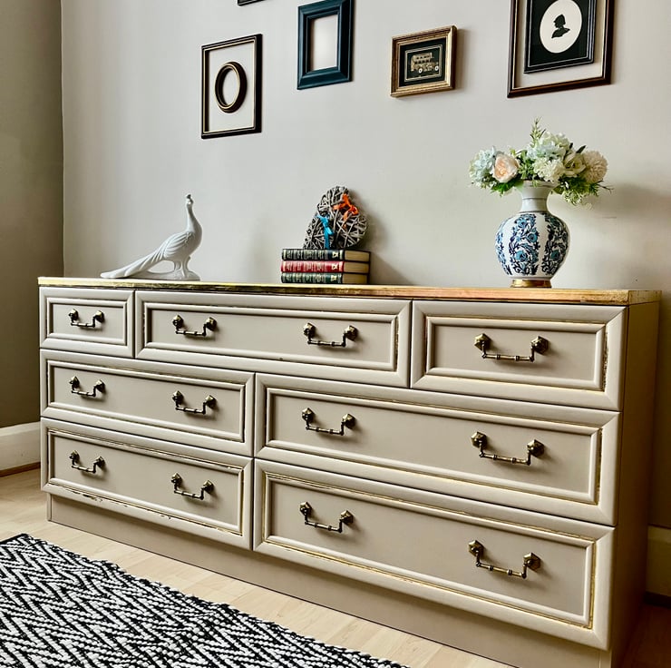 This G Plan vintage sideboard cabinet is a unique antique piece that will add character to any room. The beautifully designed sideboard features a beige colour, gold-finished handles, and brass handle material. With a height of 69cm, length of 46cm, and width of 150cm, this sideboard is spacious enough to store various items without compromising on style.