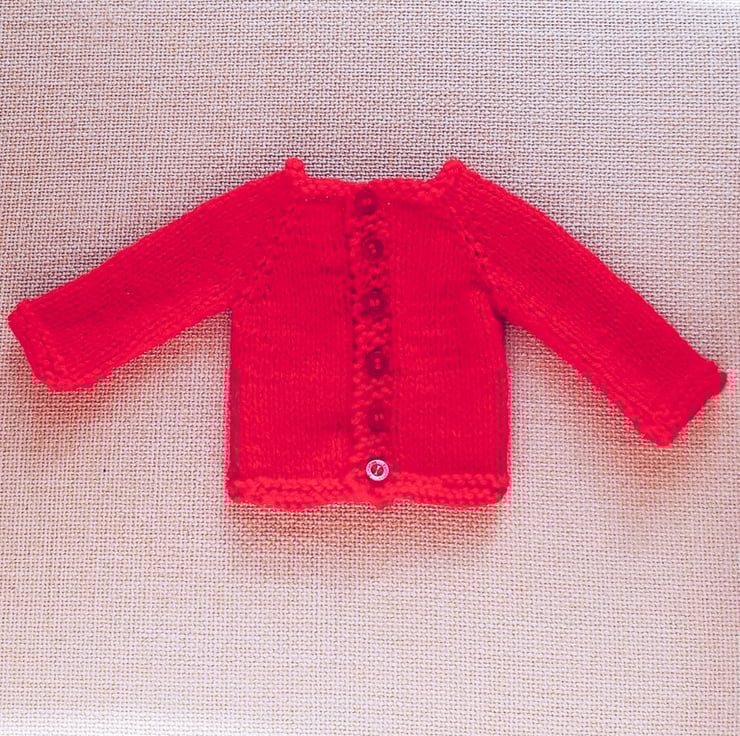 This hand knit PATTERN is for a cardigan for a Doll. To fit doll Height 46 cm or 18 inches. The cardigan is knitted in double knitting yarn using 3.75 mm knitting needles and is knit flat and seamed.