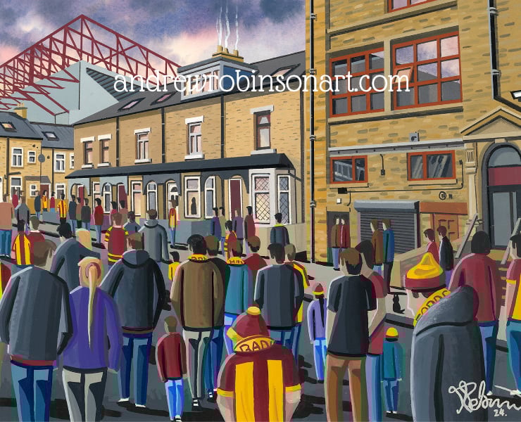 Titled ‘Valley Parade Brigade’ this is a unique Bradford print direct from myself the artist. My artworks are a celebration of the match day experience and of stadium architecture.